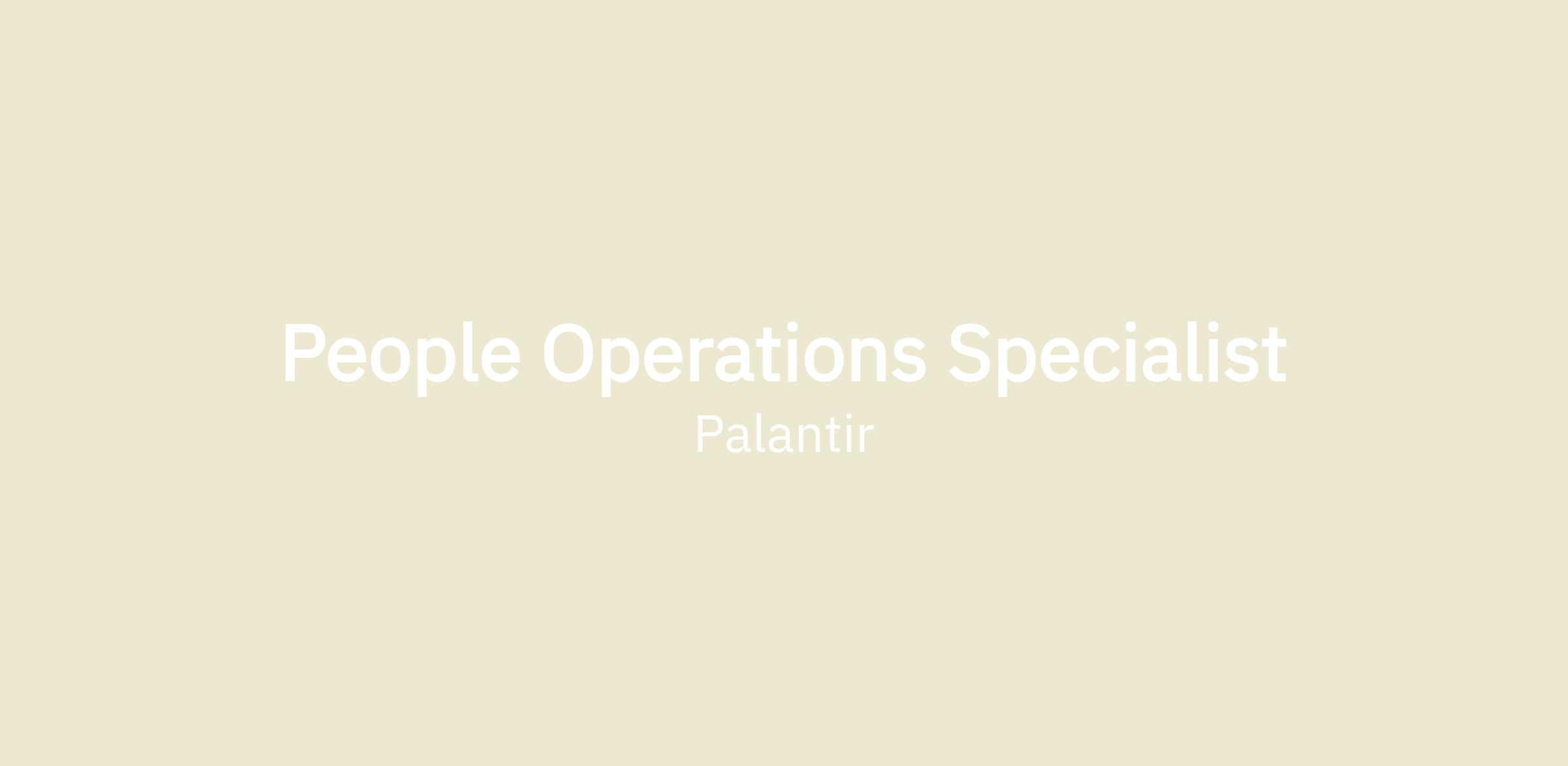You are outcome-oriented and pursue solutions in a thoughtful, iterative, and empathetic way. You have a keen eye for detail and critical thinking and are motivated by consistently improving internal processes that remove friction and create seamless employee experiences. Most importantly, you find people-focused work exciting and rewarding, and you're energized by the opportunity to work at the intersection of people and operations. At Palantir, we work hard to support all of our team members in our shared pursuit of the mission – and as a People Operations Specialist, you'll be instrumental in making that happen.