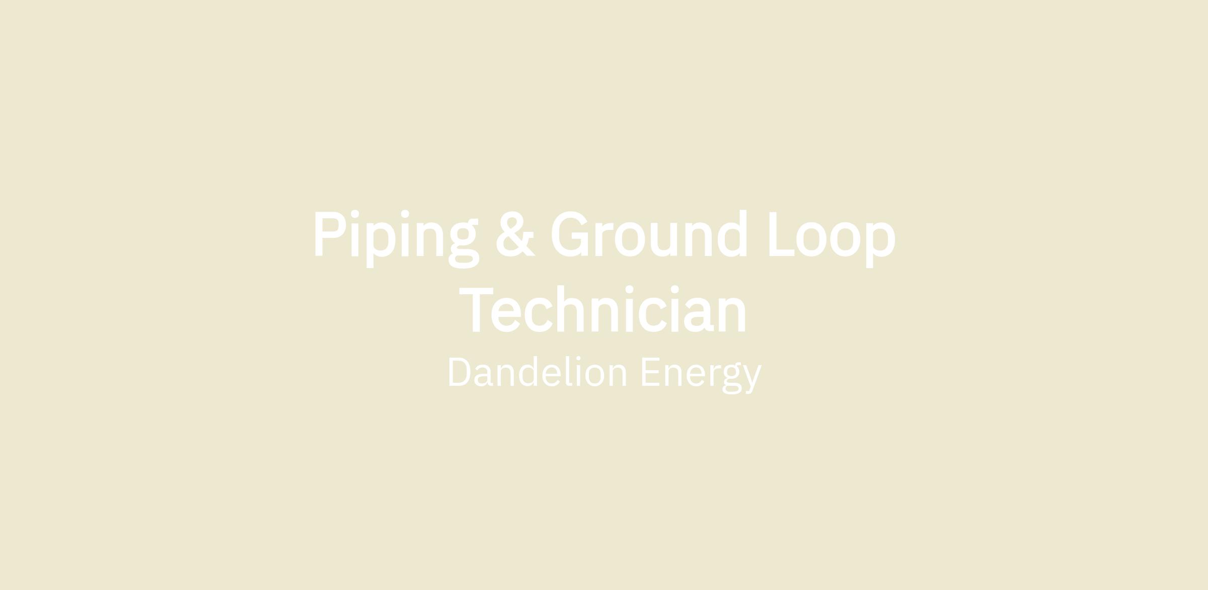 As a Piping & Ground Loop Technician at Dandelion Energy, you’ll support our Ground Loop Commissioning (GLC) operations by installing and fusing HDPE piping, pressure testing, system flushing/filling, and preparing loops for commissioning. You'll work directly under our Ground Loop Commissioning Lead on active job sites, gaining hands-on training in fusion, equipment operation, and geothermal ground loop installation. This is an outdoor, field-based role where you'll build the technical foundation for a career in renewable energy construction — no geothermal experience required.