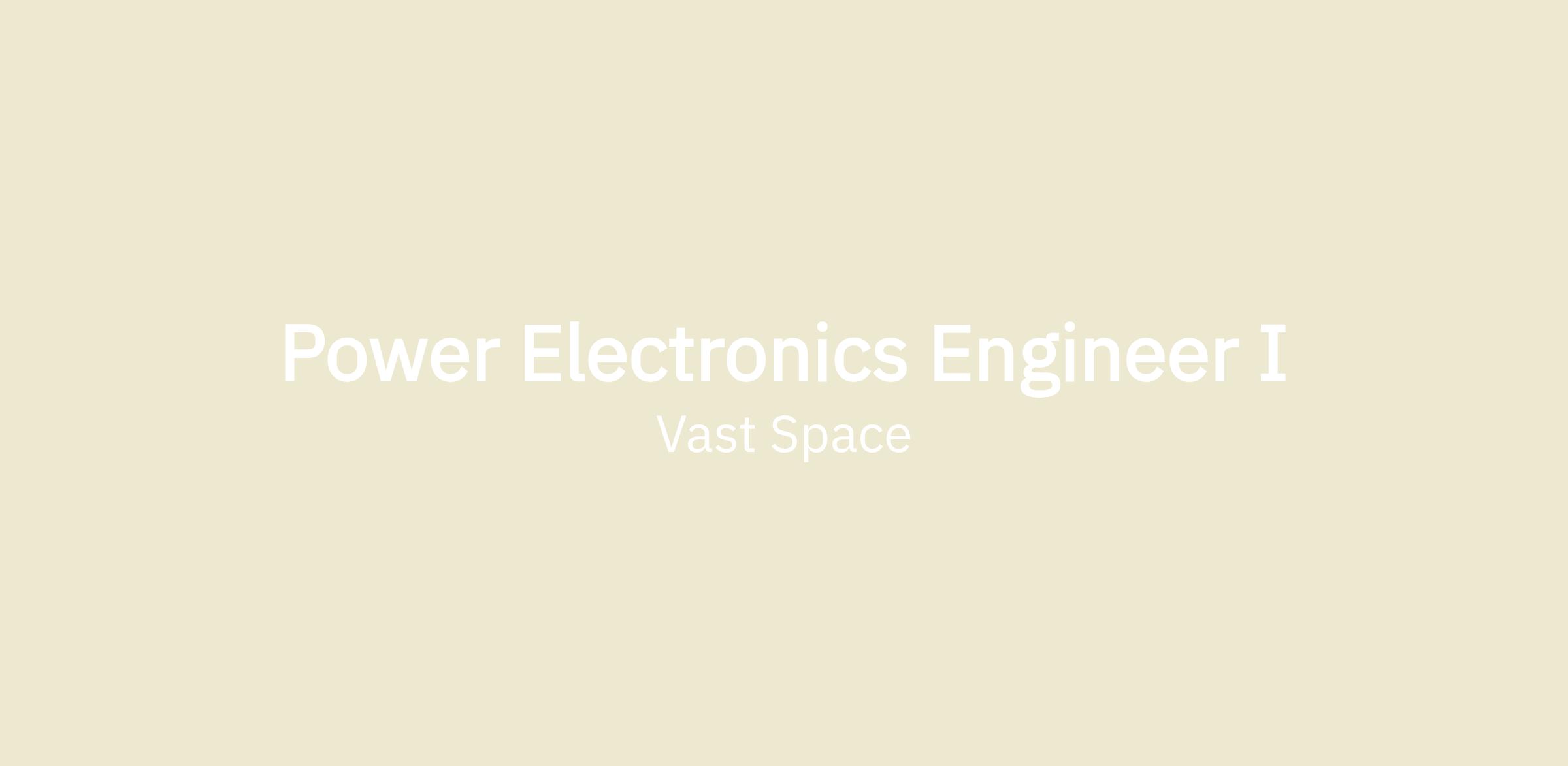Vast is looking for a Power Electronics Design Engineer l, reporting to the Manager, Power Electronics, to support the development of the systems that will be required for the design and build of artificial-gravity human-rated space stations.