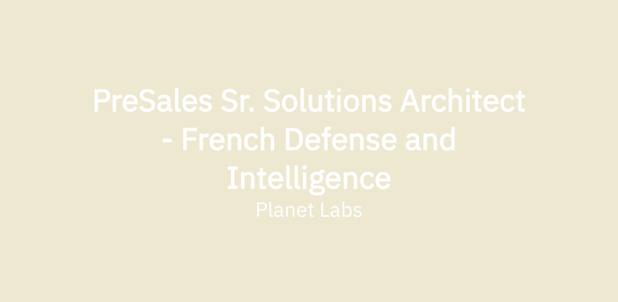 PreSales Sr. Solutions Architect - French Defense and Intelligence