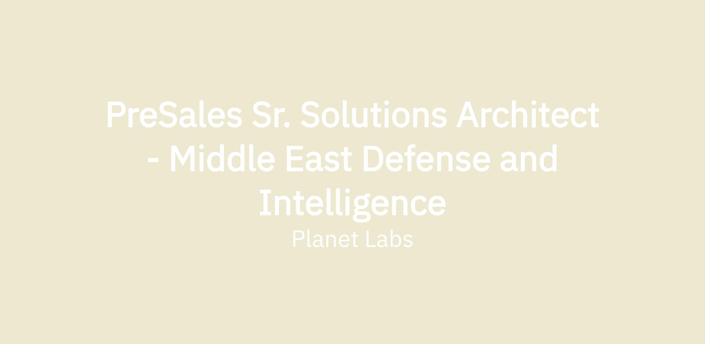 As a Pre-Sales Solutions Architect, you'll demonstrate the value of Planet's data and services to help organizations within the Middle East and North Africa region (MENA) overcome their earth data challenges. You'll also collaborate with internal cross-functional teams, including Customer Success, Product Management, and Business Development, to act as the voice of the customer to enhance Planet's industry offerings.