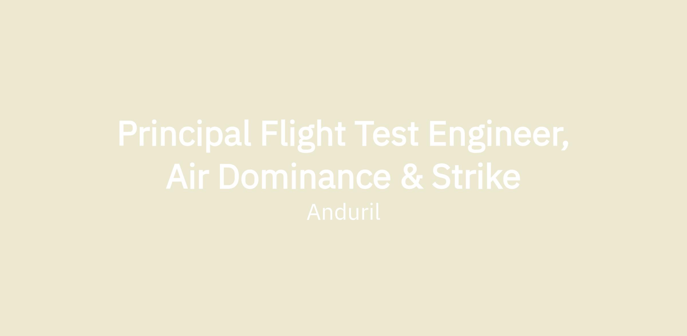 - As a Principal Flight Test Engineer, under minimal supervision, you will determine and develop and recommend various approaches to achieve T&E goals set by Anduril T&E leadership. You will manage and guide the technical efforts of the Fury T&E Flight Test Engineers and control room personnel. You will provide direct input to test event planning, preparation, execution and reporting.