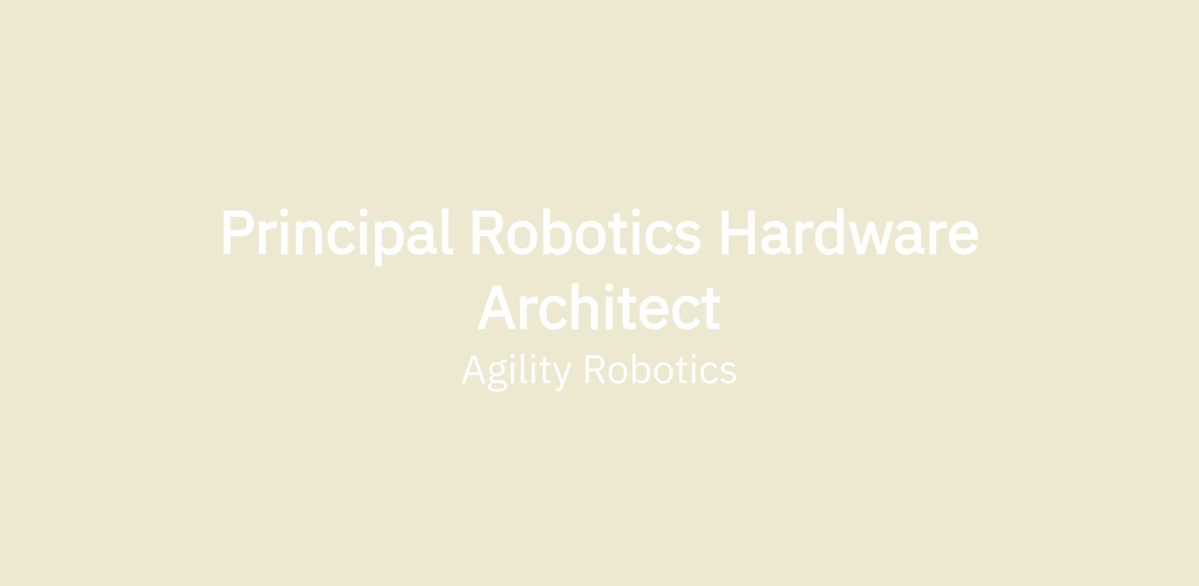 Agility Robotics is pioneering the development of humanoid robots built for real-world work. Our mission is to create robots that integrate seamlessly into human environments, addressing complex challenges across logistics, manufacturing, and beyond. As we grow, we are seeking a Principal Robotics Hardware Architect to lead and elevate our architecture team—driving system-level design decisions, ensuring scalability, and maintaining the speed and agility essential to success in a fast-paced startup environment.