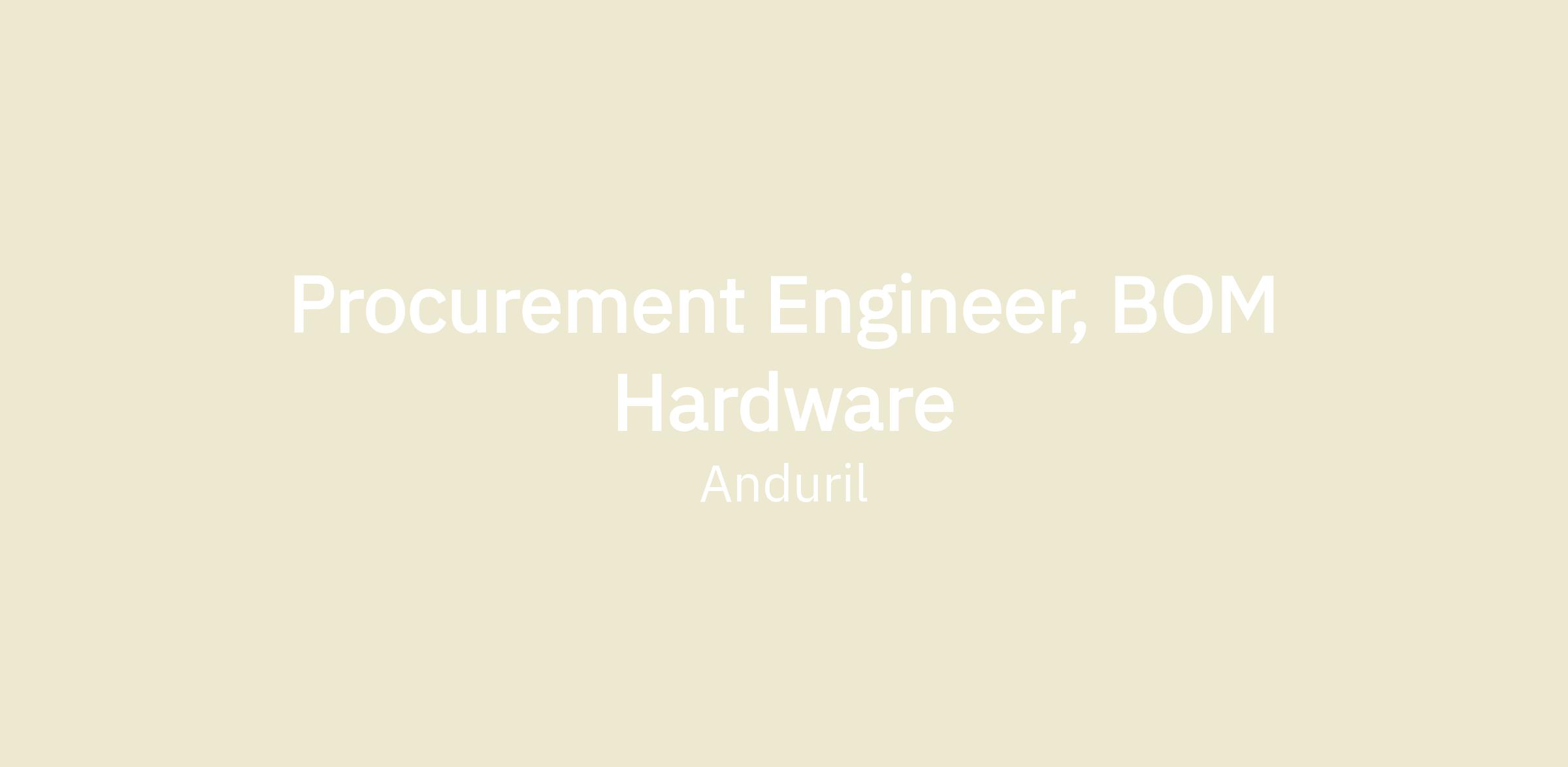 The Procurement Engineer (internally known at Anduril as Product Sourcing Engineer) drives the strategic supply network development and cost management of Anduril’s product hardware across their lifecycles, by collaborating with suppliers and cross-functionally, including folks in engineering, quality, and manufacturing.
