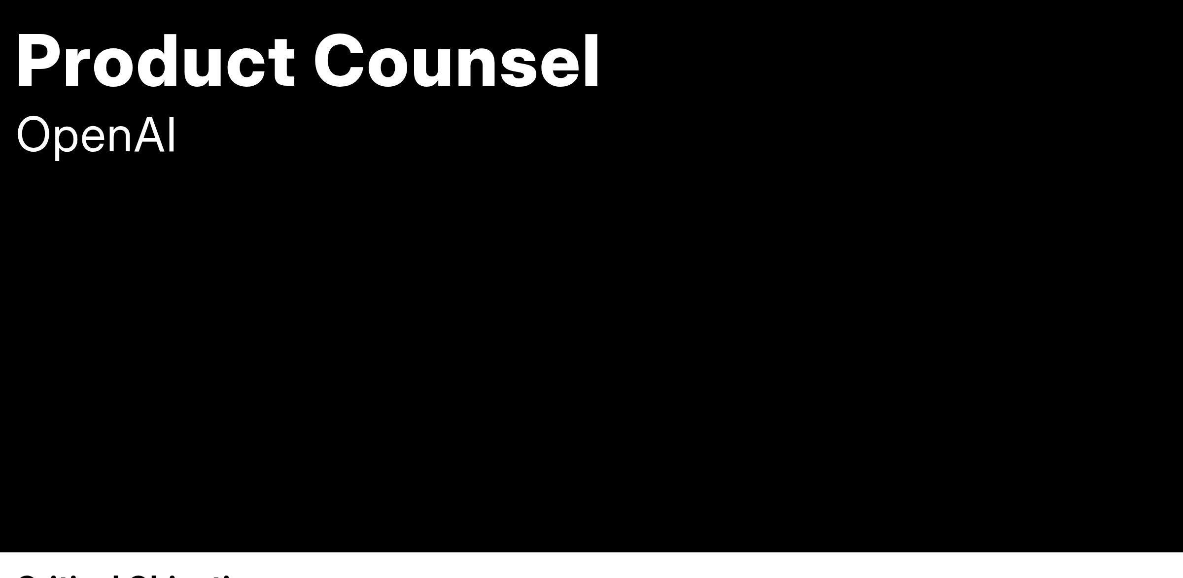 Be the go-to counsel and partner for several teams focused on AI research and consumer product development (e.g. ChatGPT and ChatGPT for EDU).
