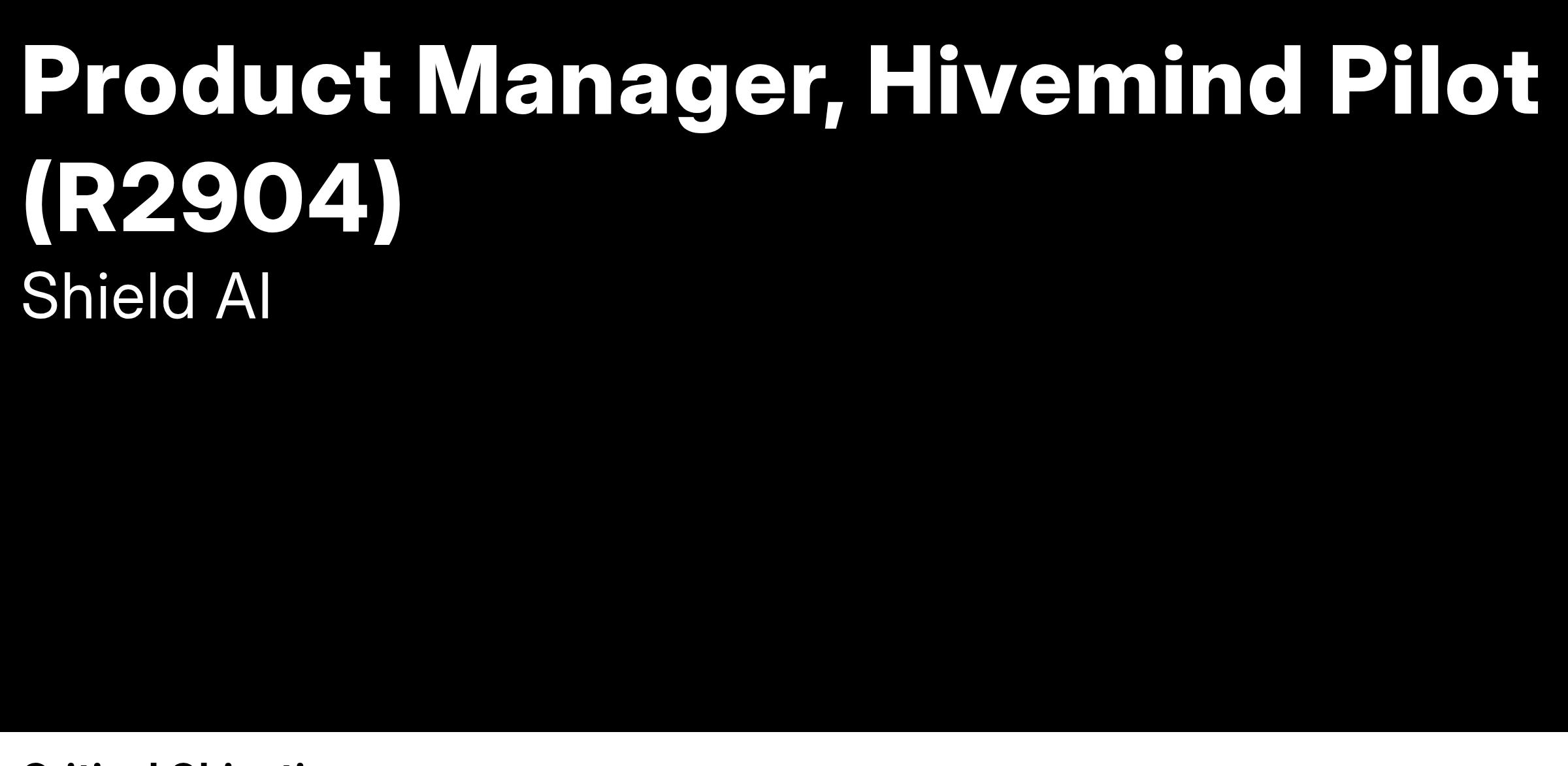 - Develop and maintain a roadmap for Hivemind Pilot that provides world-class autonomy across air, sea, land, and space domains in collaboration with engineering leadership.