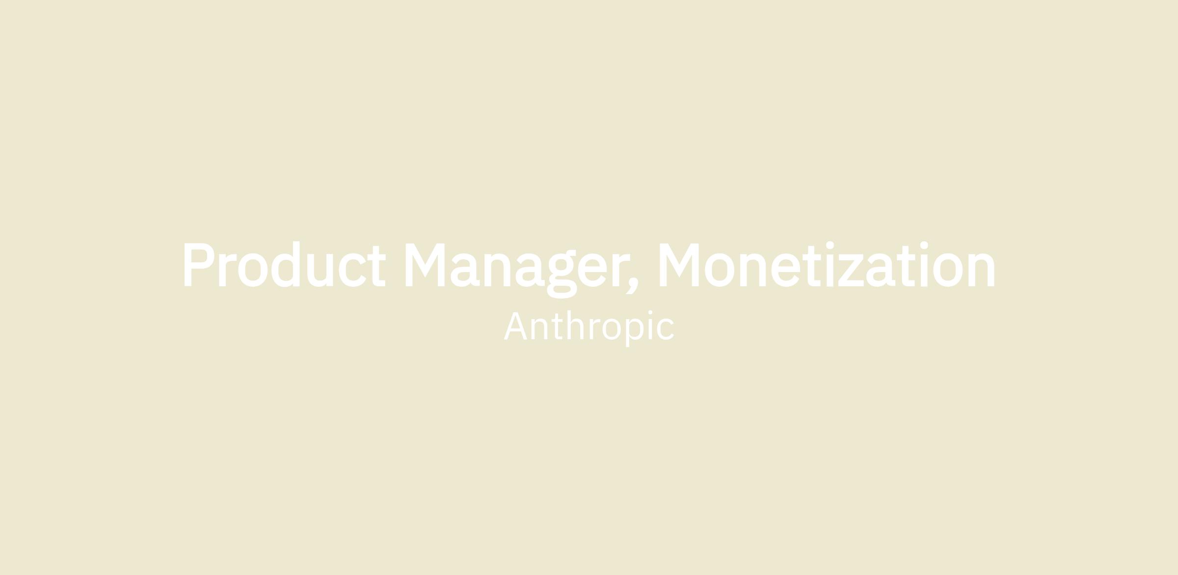 As a Product Manager for Monetization, you’ll drive revenue growth across our product suite spanning Claude.ai, Claude Code, Claude Cowork, and Claude Platform. You’ll work closely with other growth teams that are focused on driving growth for specific audiences. You’ll also partner with a cross-functional team of engineers, designers, marketers, and data scientists to develop and execute strategies that accelerate our growth while maintaining our commitment to safety and beneficial AI.