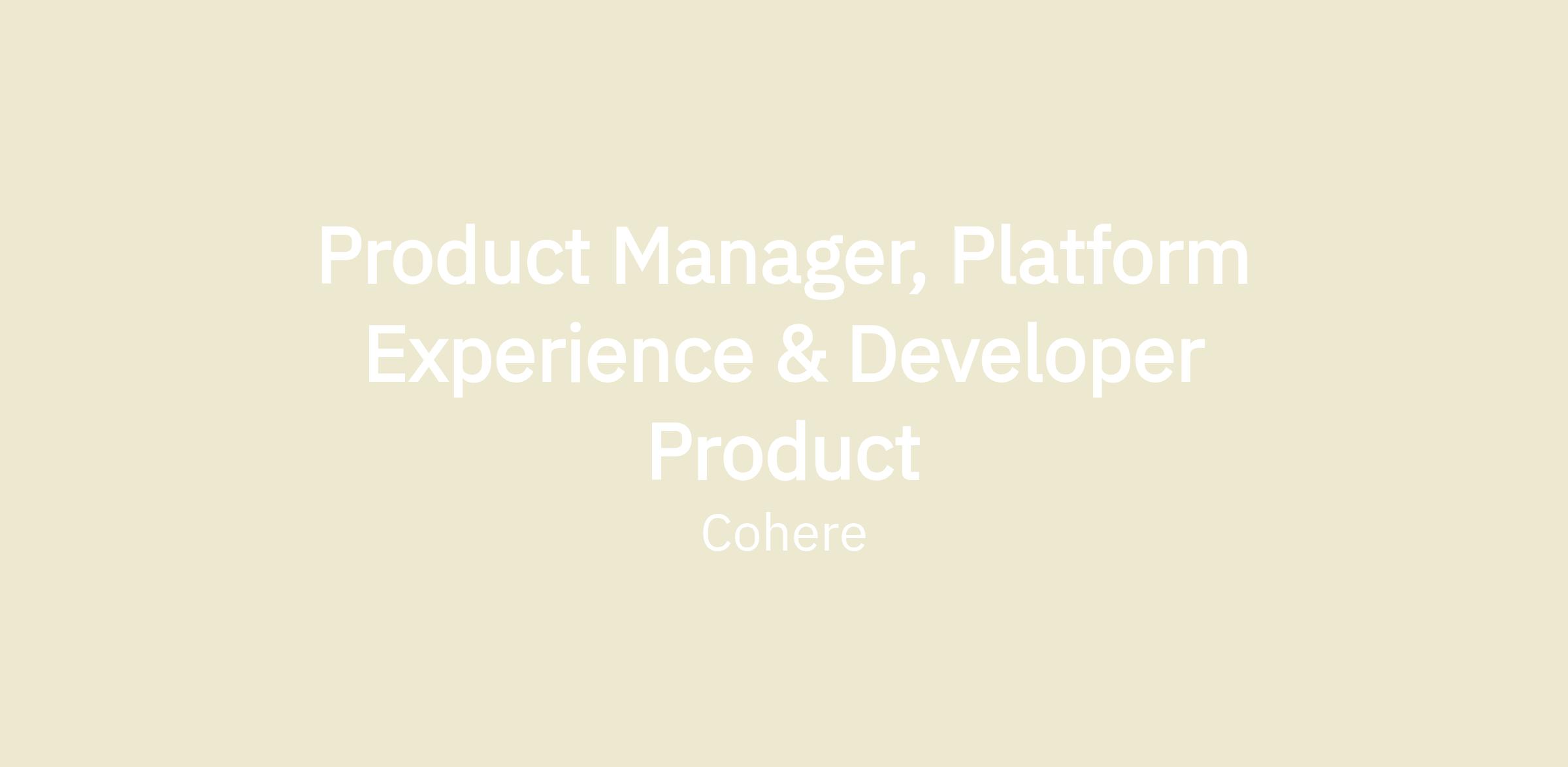 We are seeking a Platform Experience and Developer PM to own how developers and enterprise technical teams build on, integrate with, and operate Cohere's model platform.
