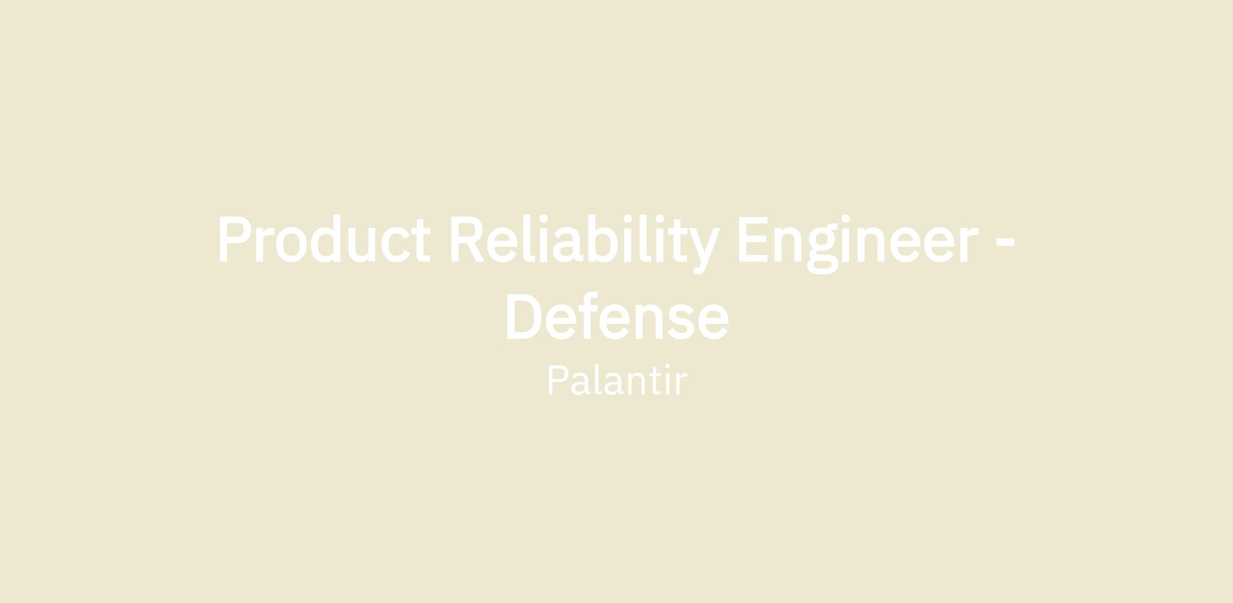 Product Reliability Engineer - Defense