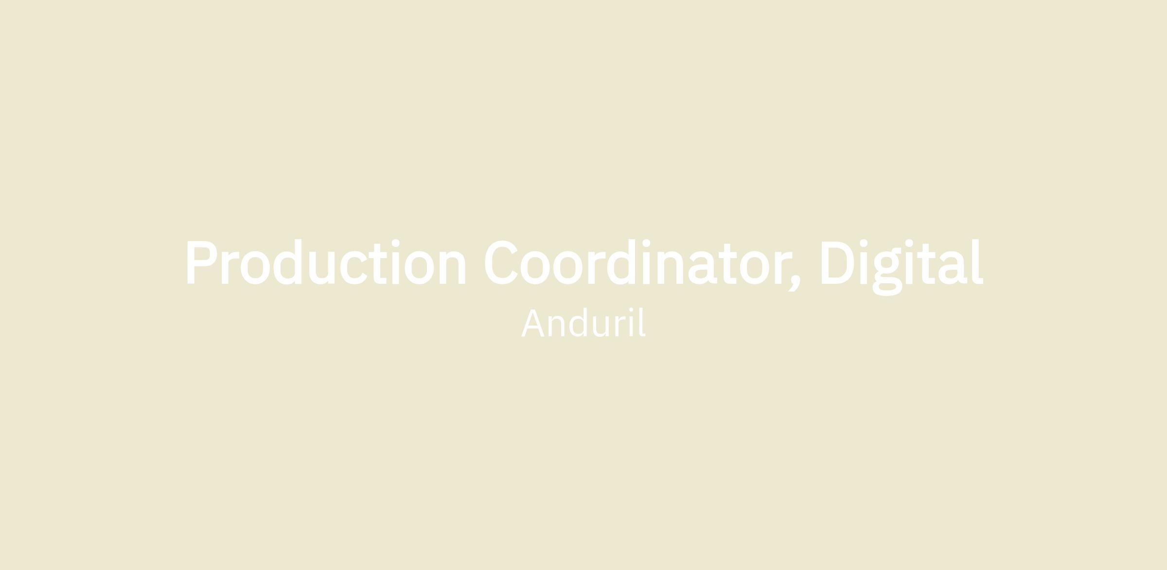 Anduril’s Design Team is seeking a Digital Production Coordinator to join our team. The Design Team leads Anduril’s brand identity, visual communication, digital, photography, film, concept art, and industrial design. Our team’s purpose is connecting the mission, people, and products to elevate the Anduril brand.