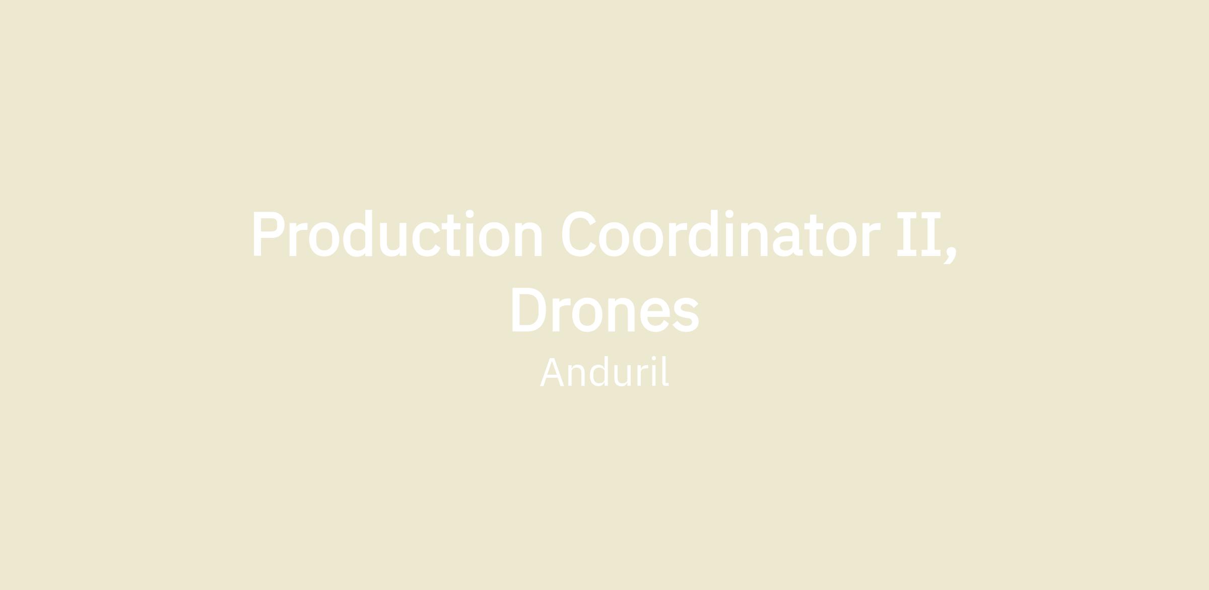 We are seeking a Production Coordinator to join our manufacturing team at Anduril who will be responsible for organizing and coordinating all aspects of a production. Here you will work on cutting-edge technology aimed at advancing the state-of-the-possible. The Production Coordinator is responsible for resource planning, documentation, communicating with multiple stakeholders, problem solving and more! If you are someone who is a highly motivated team player who is willing to support a fast paced team environment and detail oriented self starter with minimal oversight then this role is for you.