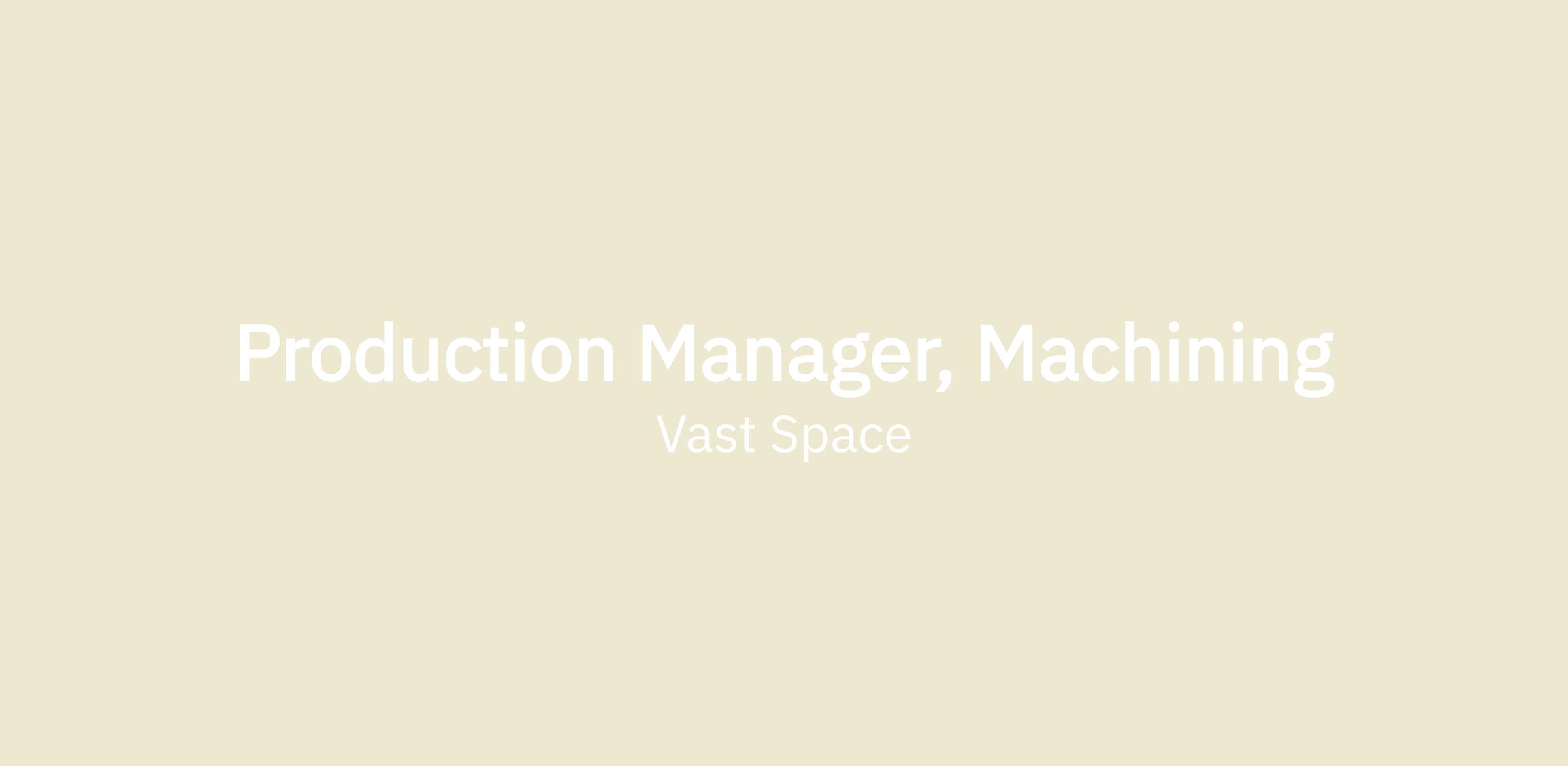 Vast is looking for a Production Manager of Machining, reporting to the Sr. Manager of Advanced Manufacturing, to support the development of the systems that will be required for the design and build of artificial-gravity human-rated space stations.