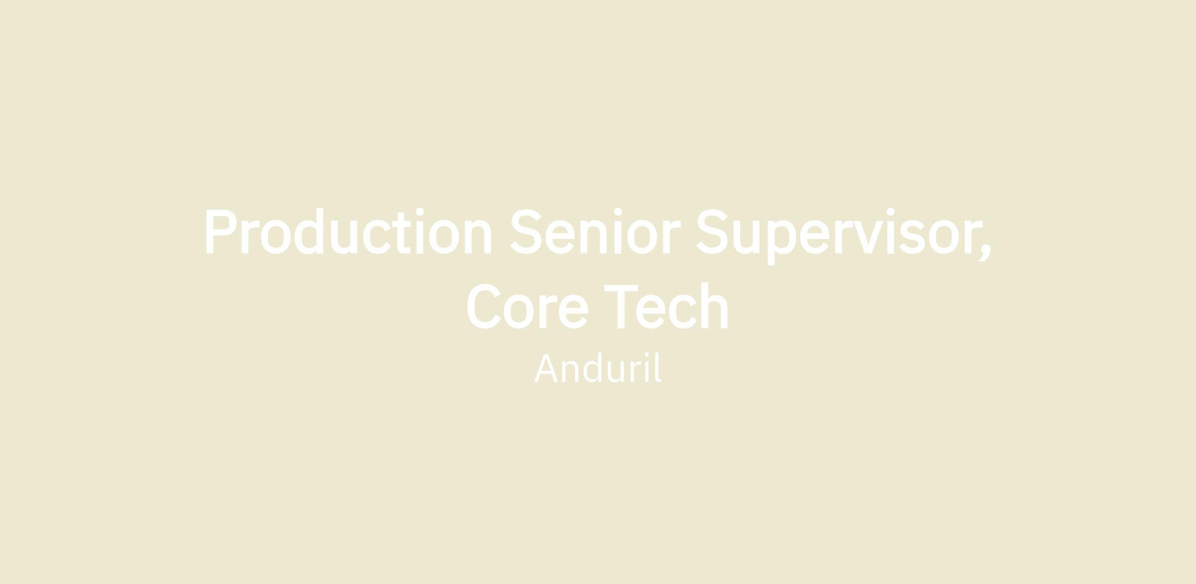 We are seeking a Production Senior Supervisor to join our manufacturing team at Anduril. You will work on cutting-edge technology aimed at advancing the state-of-the-possible. The Production Supervisor will be responsible for managing a team of highly talented technicians to produce a number of different products for strategic military and commercial customers. This is a highly dynamic role that requires both frontline technical and people management skills.