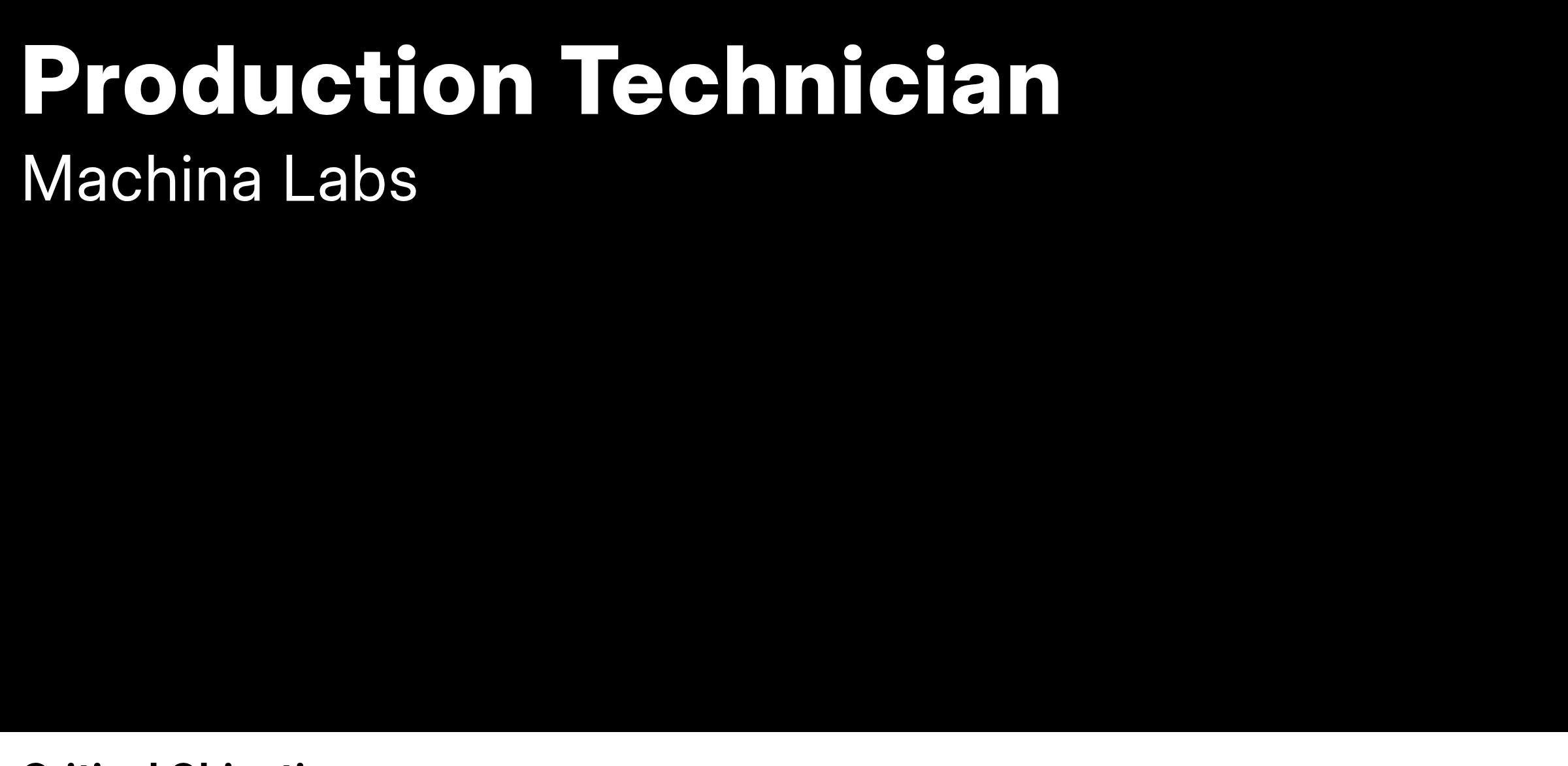 Machina Labs is looking for motivated, energetic, and enthusiastic Production Technicians to join our Production team who are working on new robotic systems for sheet metal forming. As a Manufacturing Technician you will be in charge of installing, maintaining, and operating our newly developed manufacturing systems. You will be responsible for maintaining daily production uptime of the machines, including all subsequent operations such as trimming, deburring, grinding, and coating. This position also involves the proper documentation of process settings through setup sheets (maintained online) and maintenance of process books (online) and their contents. Other tasks relevant to the process technician include participating in work instruction development projects, and training others as necessary. You will be working with manufacturing, mechanical, software and robotics engineers to implement new systems and manufacturing parts. Success in this role requires people who are motivated, adaptable, inquisitive, have a high attention to detail, and are eager to learn new things. Our team is tight-knit, and we regularly push the boundaries of what has been done in traditional manufacturing. In addition to the required experience below, our ideal candidate needs to demonstrate exceptional personal initiative, inclination to try new processes, and the ability to maintain positivity, composure and a good attitude in demanding technical situations. Whether you are working with industrial robotic systems or finishing a recently formed sheet metal part, you’ll be expected to be responsible, hardworking, and conscientious of the quality of work you are performing. We need people who are not afraid to use their technical ability to not only identify issues but propose solutions and implement improvements. You must be able to produce high-quality work in a timely manner while continually looking forward to driving process improvements that streamline work and save costs.