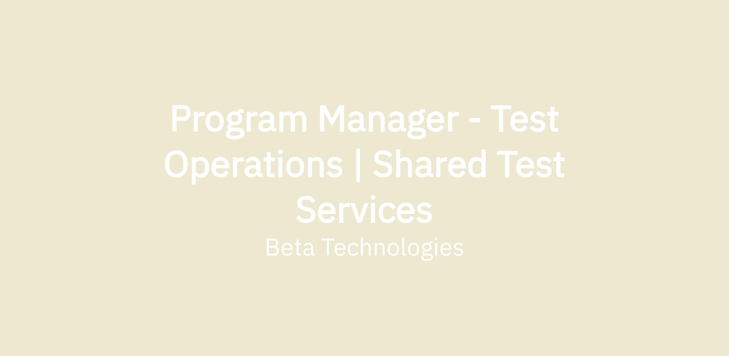 The Program Manager, Test Operations, is responsible for helping us achieve streamlined, high throughput Test across the company. On the Test Team at Beta Technologies, you will use your leadership and problem-solving skills to establish processes to forecast test needs, coordinate use and repair of a variety of aerospace test equipment and ensure smooth operation of the team. Test needs range from one-off research and development tests to extensively planned tests witnessed by the FAA for certification credit. An ideal candidate has the soft skills to keep the team moving forward, is willing to be hands-on when necessary, and has the drive and motivation to see things through to completion no matter the challenge.