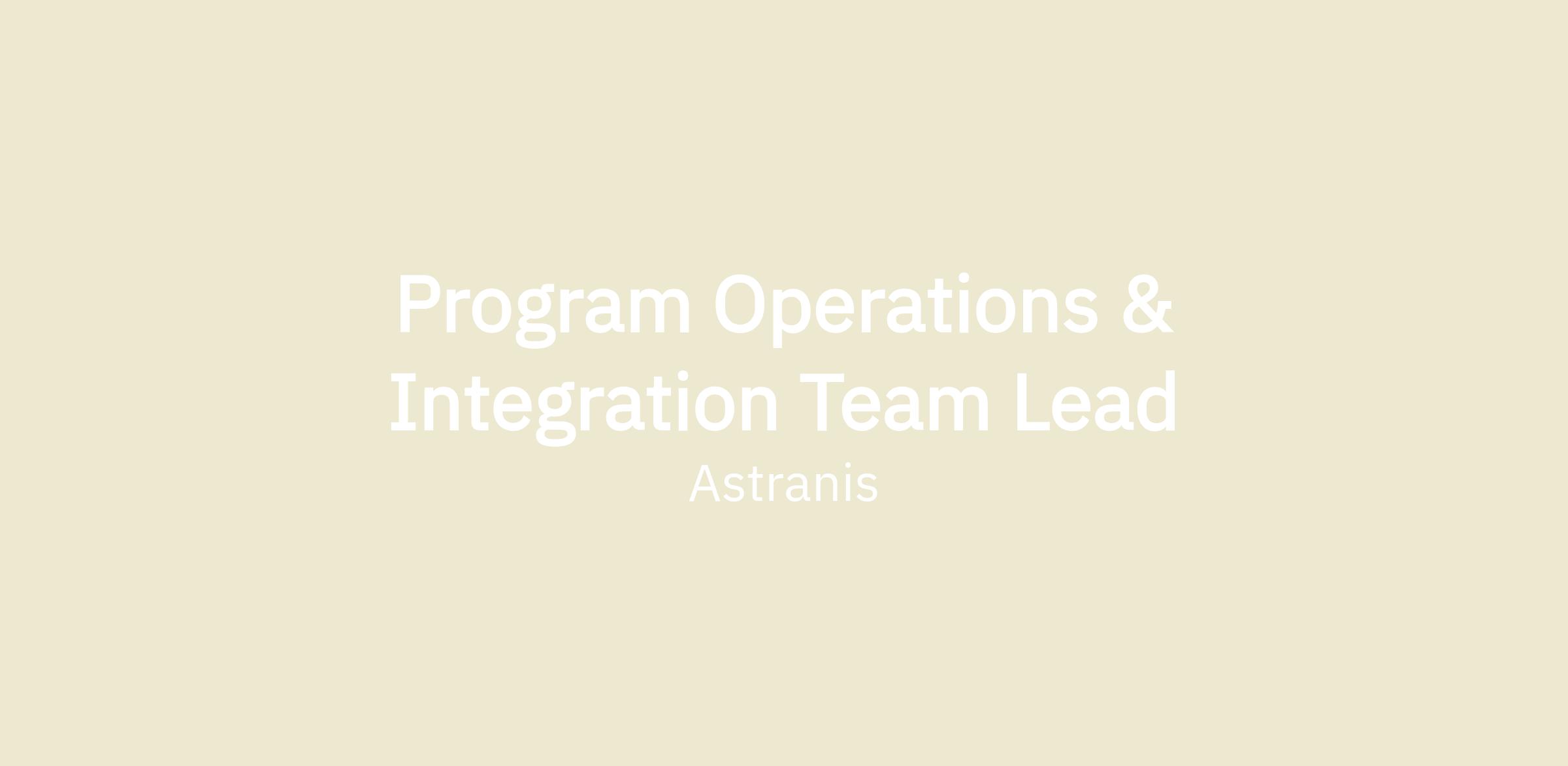 Team Lead of Program Integration & Operations