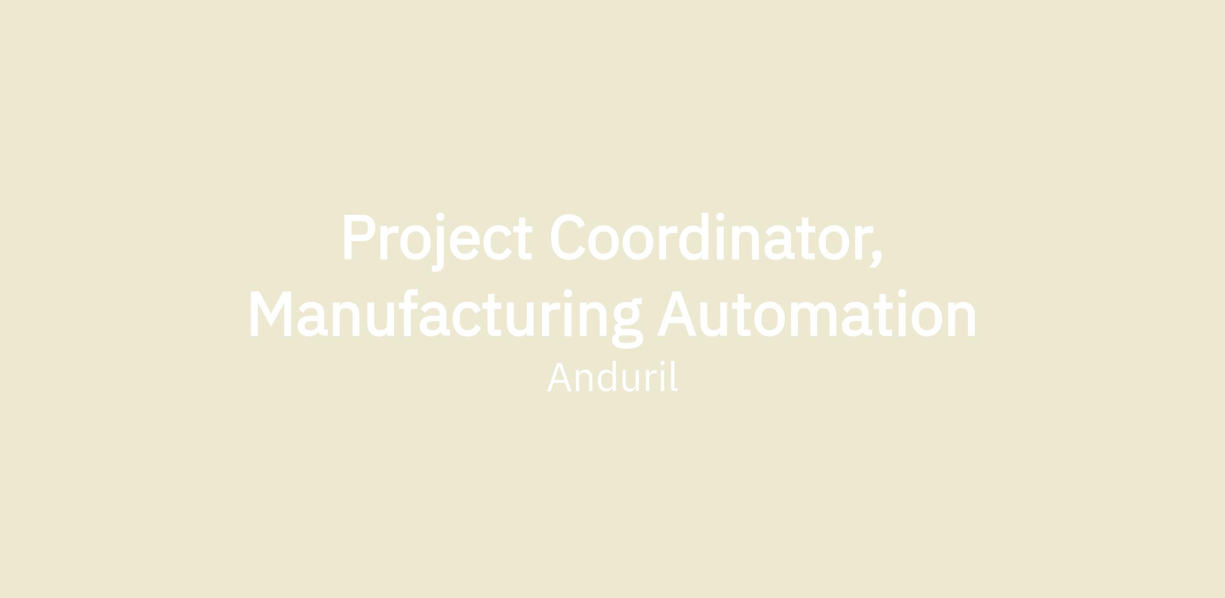 We are looking for a proactive, detail-oriented Project Coordinator to join our Manufacturing Automation team. The Manufacturing Team is responsible for rapidly iterating and building cutting-edge defense hardware, including static equipment, moving ground equipment, and flight vehicles. You will coordinate deployment and communication of new tools, processes, and capabilities across the department. You’ll be the glue that connects the product aligned teams to the automation team within manufacturing engineering. If you thrive in fast-paced, technical environments and excel at juggling multiple responsibilities, we want to hear from you.