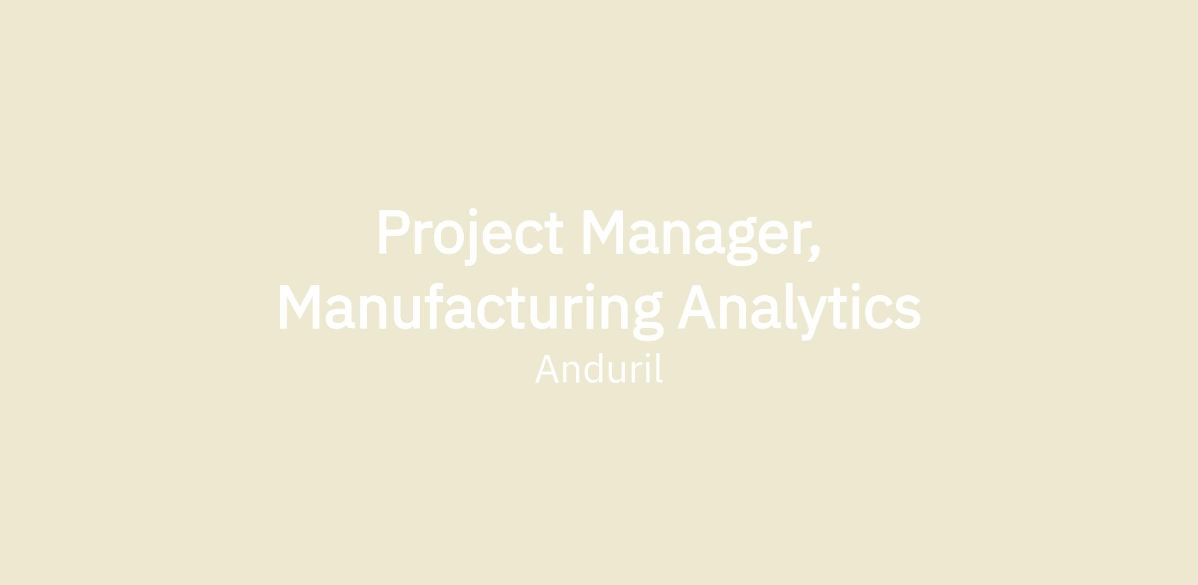 Project Manager, Manufacturing Analytics