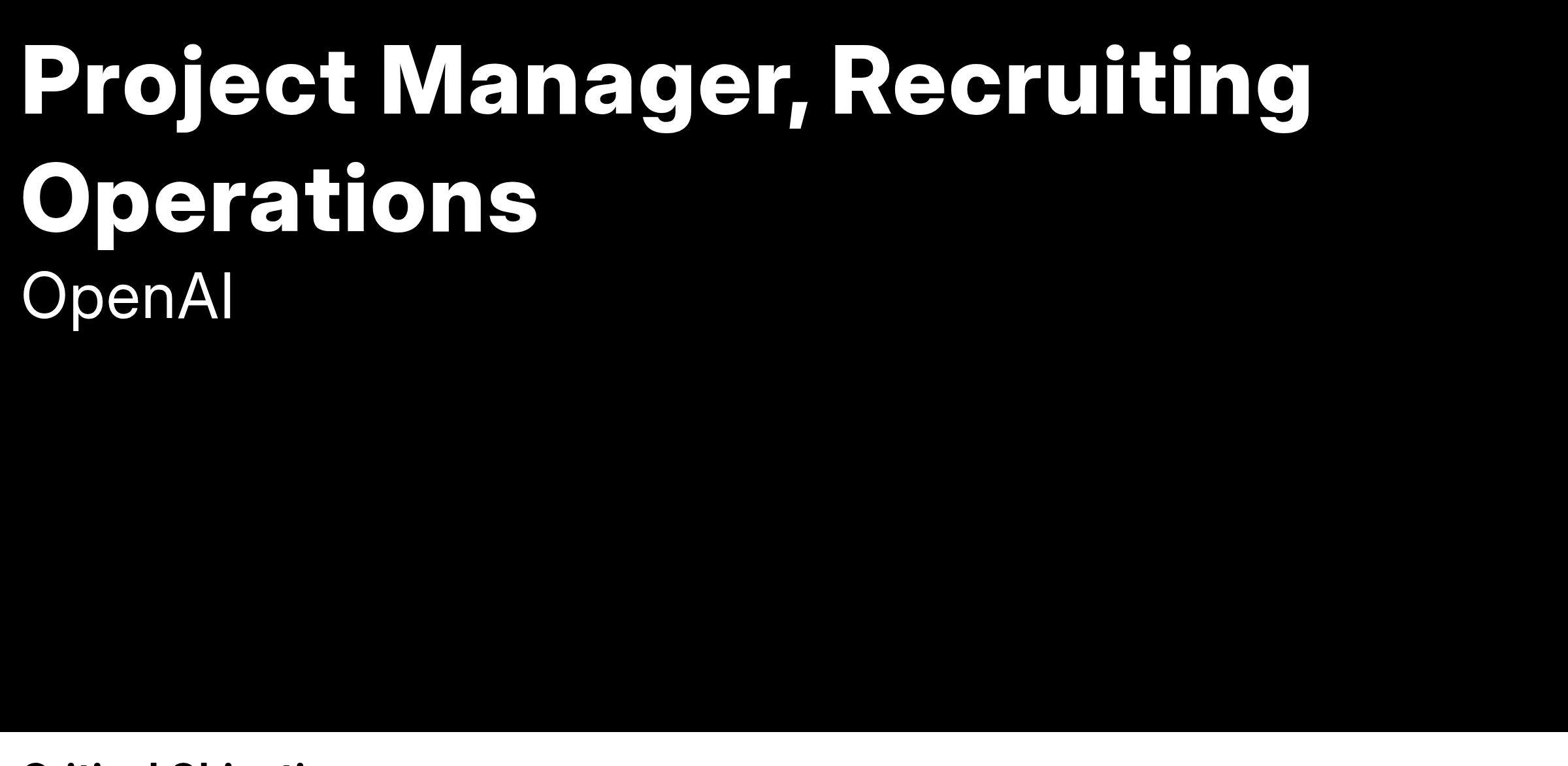 OpenAI’s Recruiting Operations team ensures our hiring processes are seamlessly executed, continuously improved, and aligned with our mission: to hire an incredibly talented, hard-working, and mission-aligned team. We work cross-functionally to deliver a best-in-class candidate experience while supporting our Recruiters, Hiring Managers, and various stakeholders across the organization.