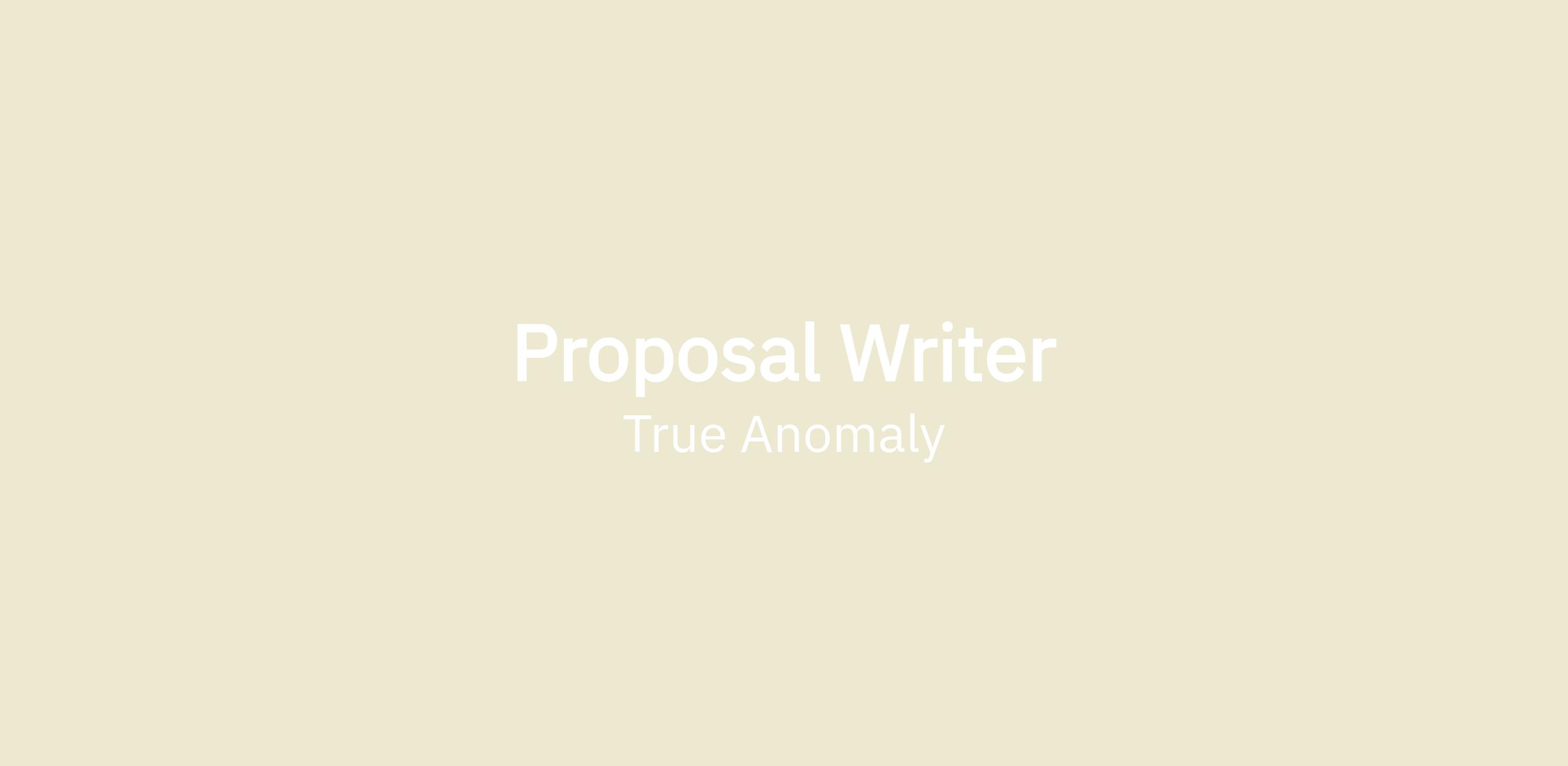 As part of the Proposal team, you will join a team that sits at the heart of True Anomaly’s growth and revenue generation and be a critical driver of True Anomaly’s growth. As a member of a fast growing start-up, you will wear many hats and be expected to work autonomously and within cross-functional teams. You will be responsible for working closely with account leads on the business development team, and technical teams, to develop and write new content that can serve a multitude of use cases through the acquisition lifecycle, from early-stage capture and sales enablement activities to advanced proposal (RFx) artifacts. You must be able to translate technical jargon into a customer’s language, and deliver artifacts regularly at the highest quality, ensuring continued wins for the business. As a detail-oriented, effective communicator, and creative writer, you turn complex technical concepts into persuasive RFx, white papers, other collateral. By understanding customer requirements, you will effectively deliver content that aligns with a customer’s unique needs. You will write technical and non-technical explanations of our product offerings and deliver compelling proposals to win new business. We are looking for mission-driven teammates who can jump into any writing project with enthusiasm and produce qualitative outputs within tight deadlines.