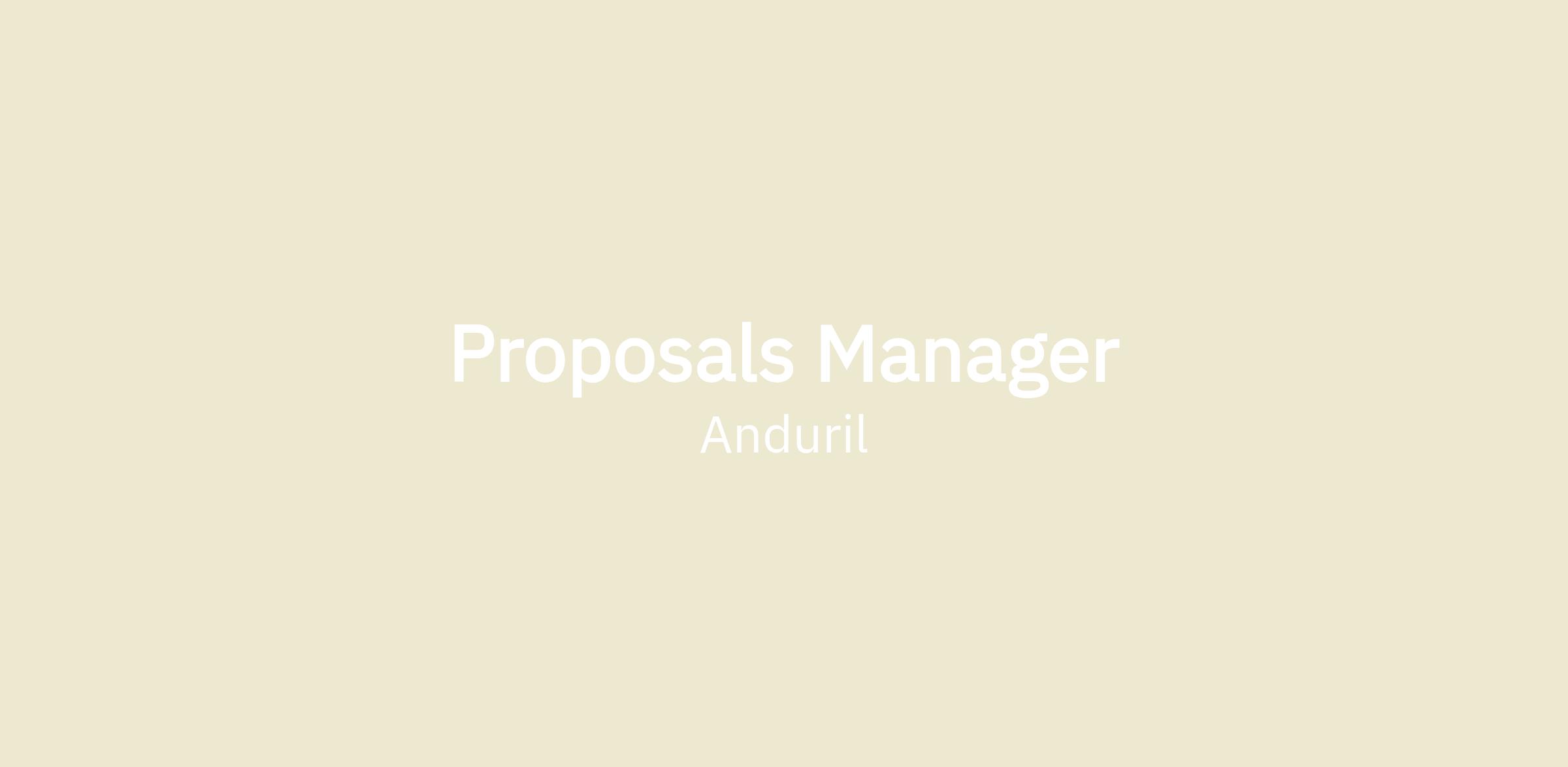 The Proposals & Capture Team is responsible for championing the development and delivery of major proposals. We partner with stakeholders across Anduril’s business lines and functional teams, including growth/business development, legal, finance, engineering, program management, and executive teams to win new business.