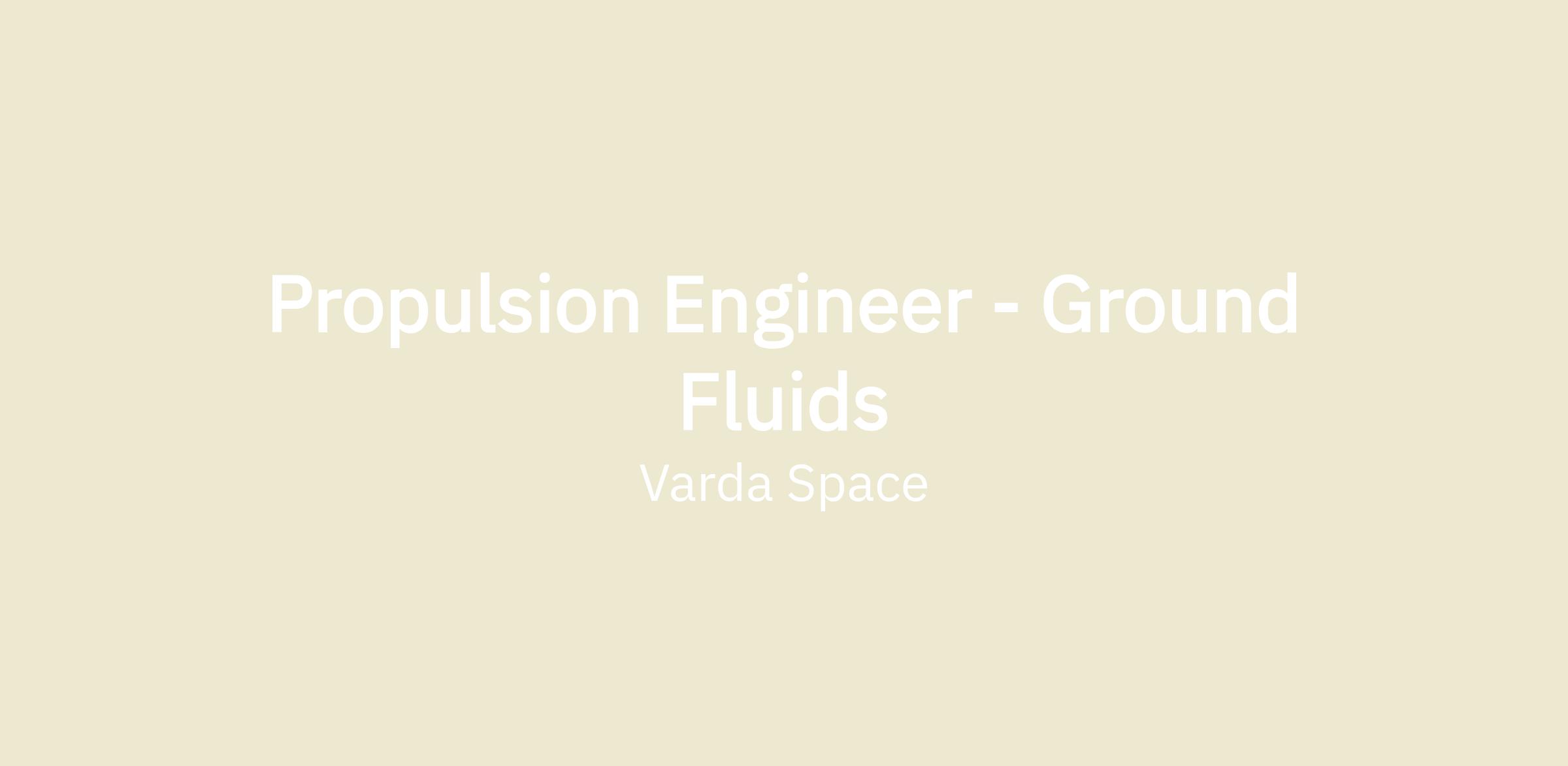 Varda Space Industries is seeking a Propulsion Engineer to be responsible for ground propulsion fluid systems for Varda spacecraft. This person will take ownership of the architecture, design, and operation of fluid systems that support spacecraft fueling, testing, and launch preparation. Your expertise will ensure the reliability and performance of systems essential to mission success. We are looking to optimize our propulsion system for our current and future generation space vehicles. Ready to grow with us?