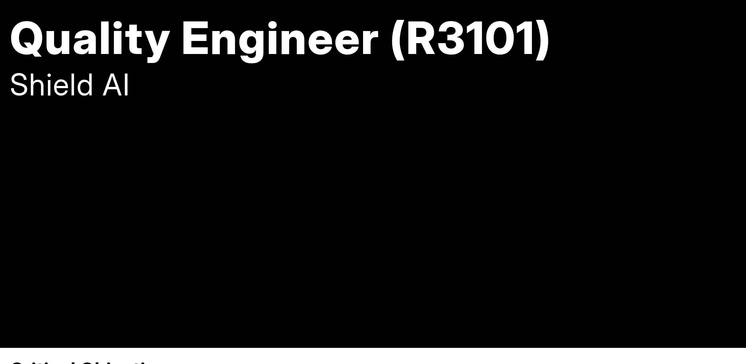 Are you a seasoned quality engineer with a passion for making a tangible impact both within your organization and on a global scale? Intrigued by cutting-edge technology and products? Keen on collaborating with mission-oriented colleagues who prioritize excellence and shared values? Shield AI is precisely where you belong!