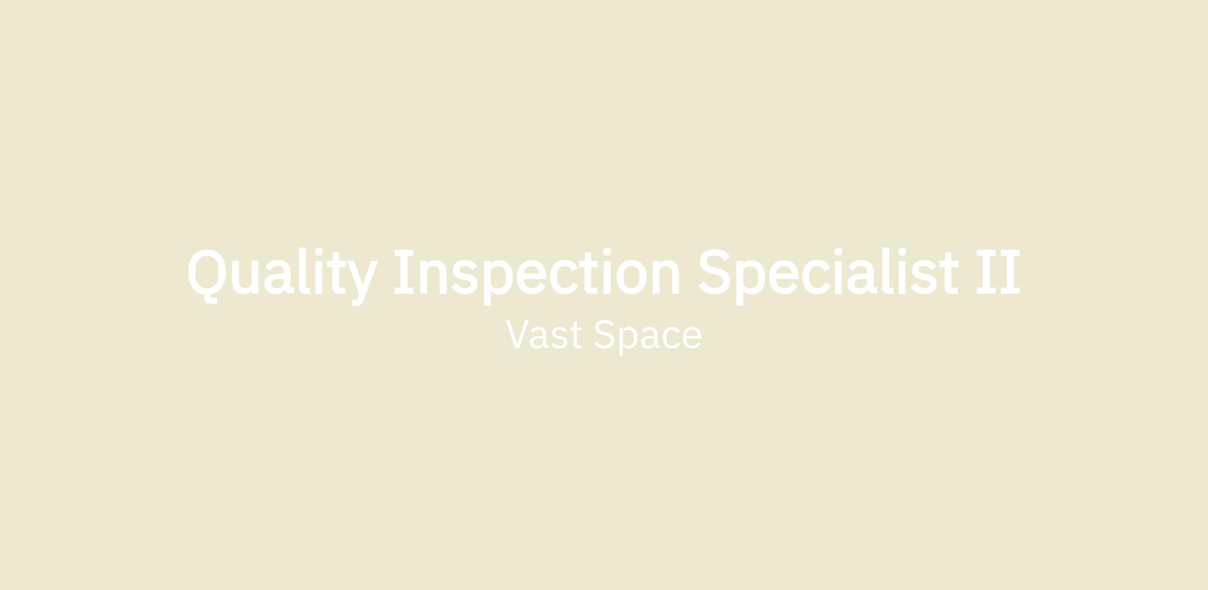 Vast is looking for a Quality Inspection Specialist II, reporting to the E-2 Principal Engineer, to create the world's highest performing engine for small launchers, while optimizing for production and low cost. In this role, you will join a team with exciting momentum that has produced and successfully tested fully integrated engine development samples. You will be a key member who will help transition the system from development to production.