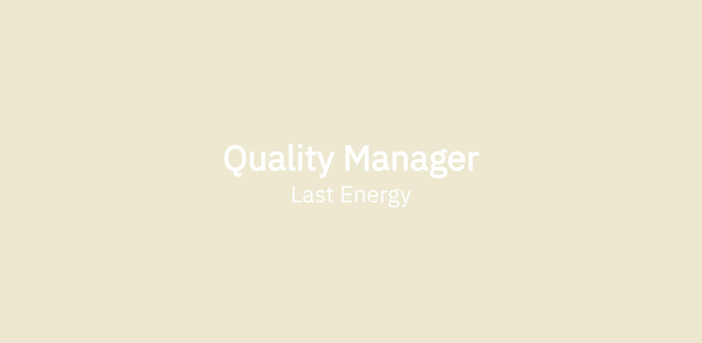The Quality Manager at Last Energy Inc. will oversee the development, implementation, and maintenance of the company's quality assurance program (QAP) to ensure compliance with industry standards, regulatory requirements, and customer expectations while maintaining and promoting high productivity. This role is critical to ensuring that our modular nuclear energy solutions meet the highest standards of safety, reliability, and performance. The Quality Manager will collaborate with internal and external cross-functional teams, including engineering, manufacturing, and project management, to maintain quality assurance throughout the product lifecycle.