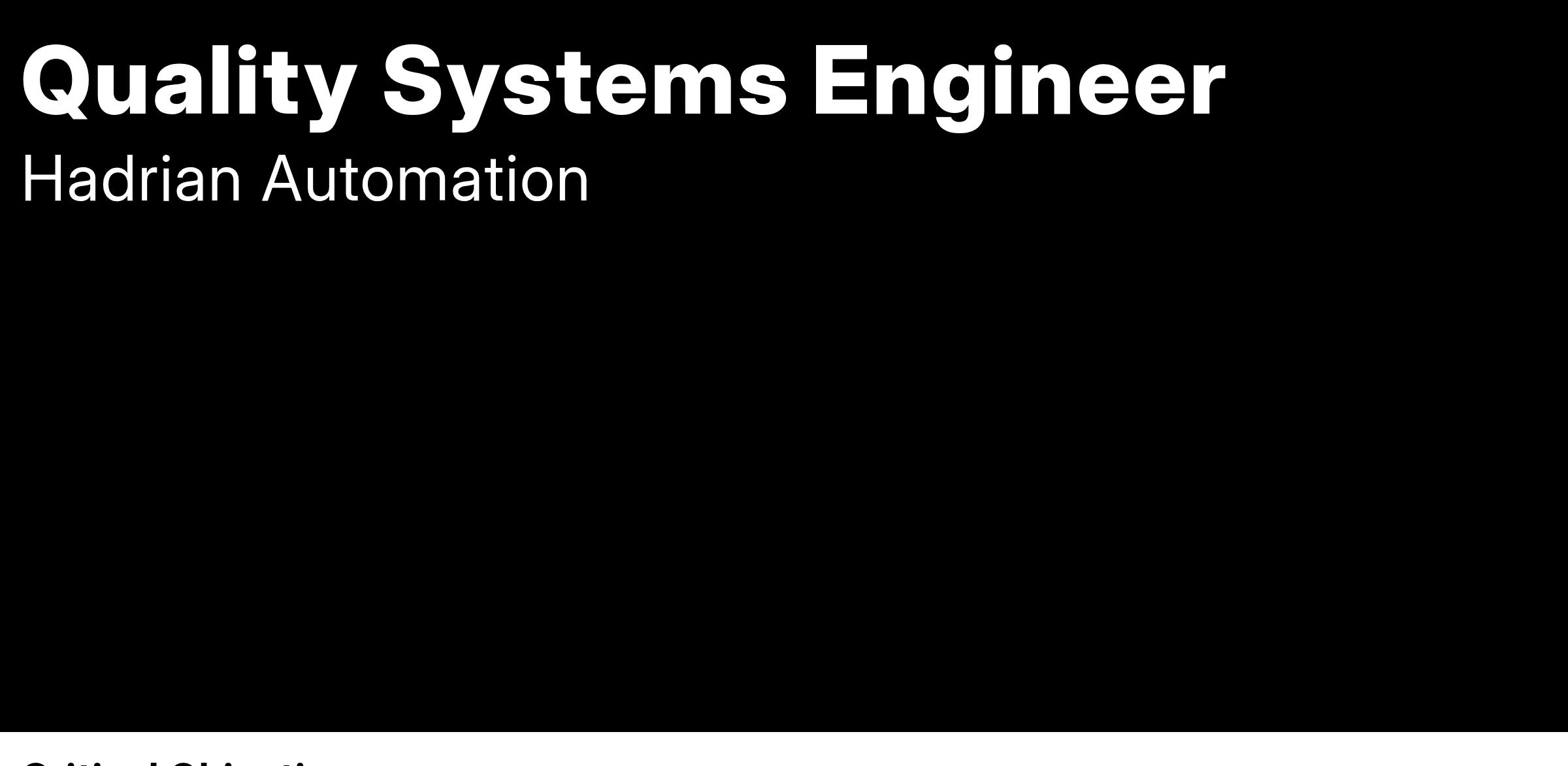 The Quality Systems Engineer will be a key player in ensuring Hadrian’s quality management processes meet both industry standards and specific customer requirements. This role involves close collaboration with customers to interpret and implement quality requirements within Hadrian’s production framework, with a focus on minimizing disruptions and proactively addressing quality concerns. The ideal candidate will have strong analytical skills, a customer-oriented approach, and experience in managing audits and compliance initiatives.