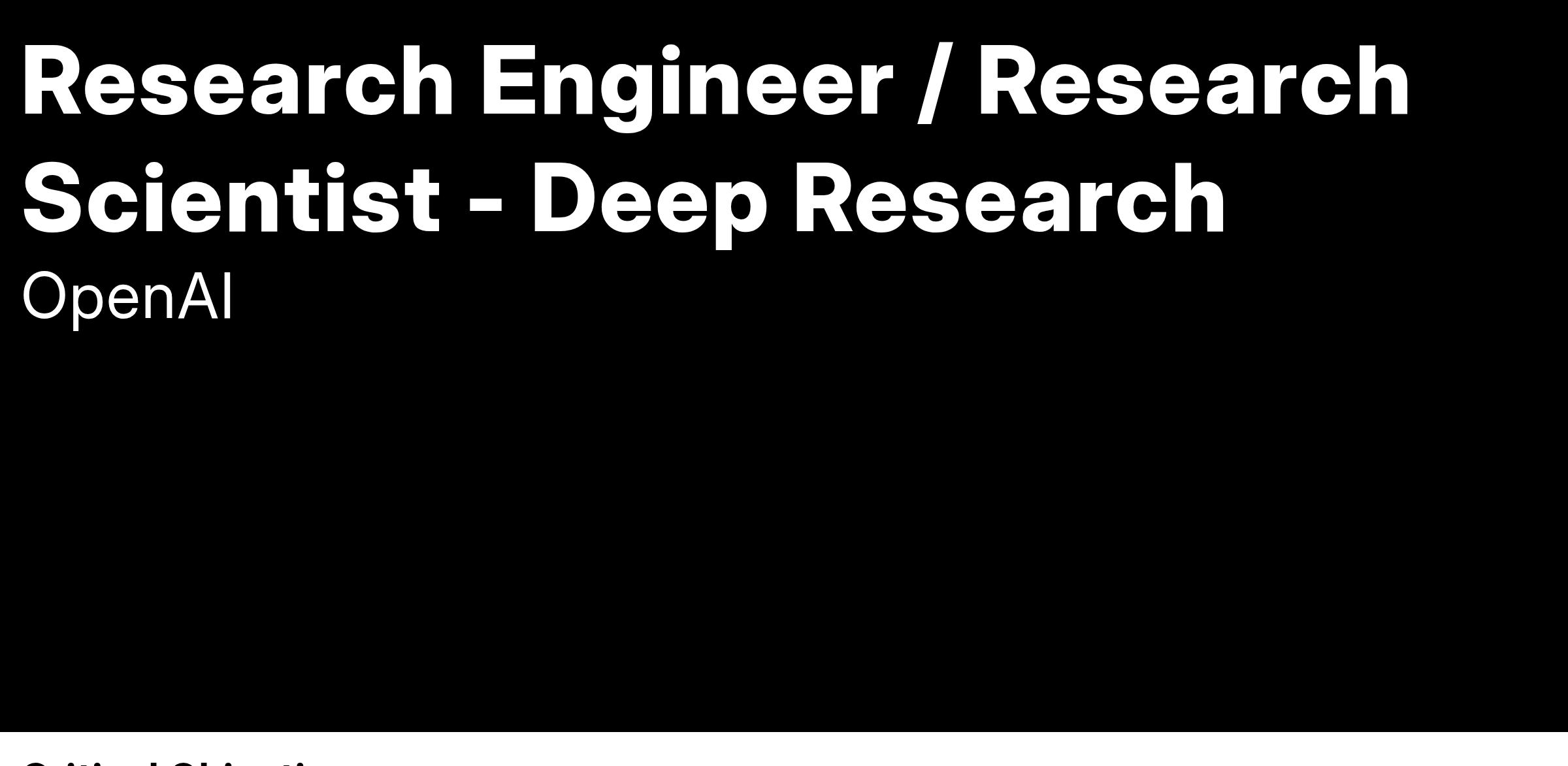 The Deep Research team is responsible for building the models that power our Deep Research capability (see our research preview) and other future agentic offerings. Our team helps shape the direction of our agentic products and conducts fundamental research inspired by our product direction.