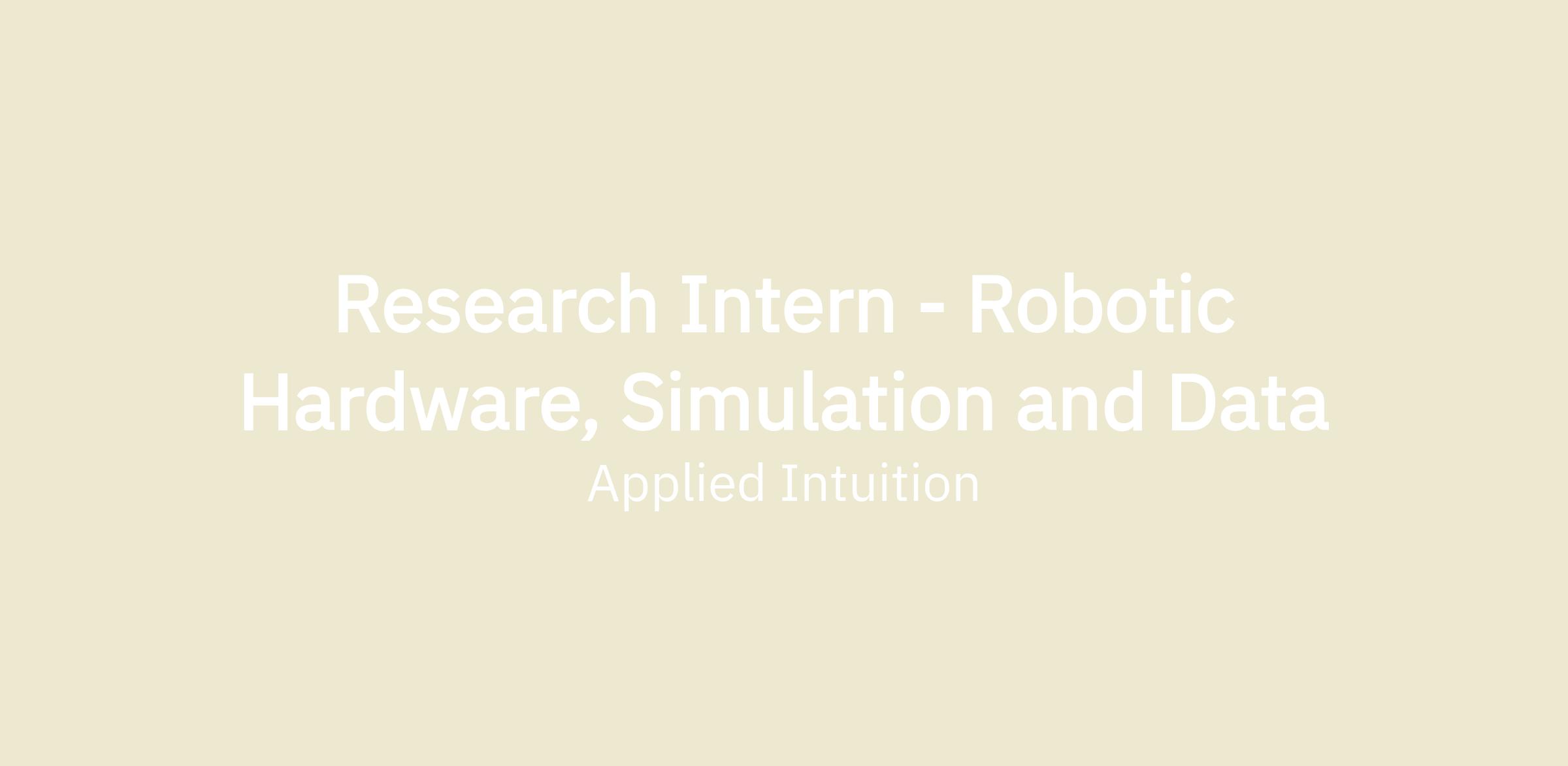 We are looking for multiple passionate Research Interns to join the Research Group at Applied Intuition. The mission of the group is to create cutting-edge technology enabling next-generation physical AI, with emphasis on the two most challenging applications reshaping our everyday life: end-to-end autonomous driving and robotic generalist. We have a group composed of leading experts from top institutions and companies, recognized for their exceptional academic and industry contributions—including eight Best Paper awards at premier conferences and journals such as CVPR and ICRA. Learn more at appliedintuition.com/research.