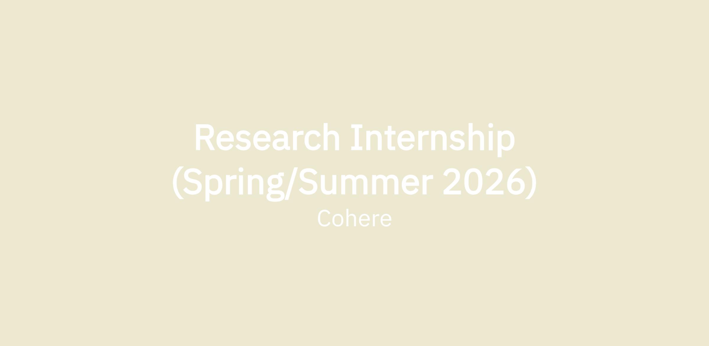 To have the opportunity to collaborate with Cohere researchers and tools on designing and implementing novel research ideas and shipping state-of-the-art models to production. We have openings in teams covering base model training, retrieval augmented generation, data and evaluation, safety, and finetuning, to name a few; and we are open to receiving intern applications in any research area relating to LLMs to broaden your research connections while obtaining deep experience in a growing AI startup.