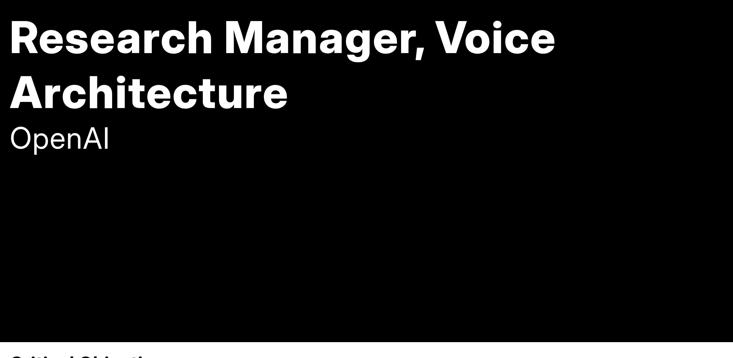 The Voice Architecture team at OpenAI is dedicated to pioneering new architectures and paradigms for next-generation large language models that integrate advanced speech and audio capabilities. Our work lies at the intersection of audio processing, natural language understanding, and real-time interaction. We focus on building seamless, multimodal systems that can handle speech input and output, operate efficiently at scale, and excel in complex real-world settings. This team also works on related cutting-edge research in areas like audio-visual video understanding, source separation, speech translation, alignment, and diarization. Ultimately, our team aims to redefine how users engage with AI through natural, context-rich, and fully immersive speech experiences.