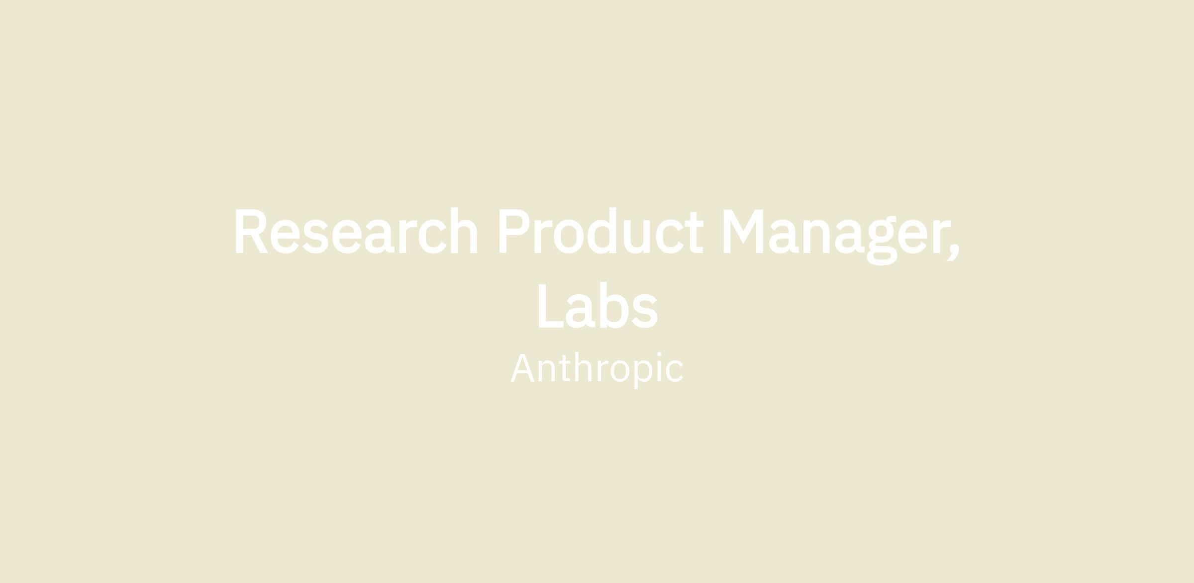 As a Research Product Manager for the Labs teams at Anthropic, you will own the ideation and development of new, moonshot products as we advance transformative, safe AI. The Labs team runs Anthropic's most ambitious experiments: new product categories that don't exist yet. The team focuses on 0-to-1 product development, taking our most advanced research and transforming it into innovative applications like Claude Code and MCP.
