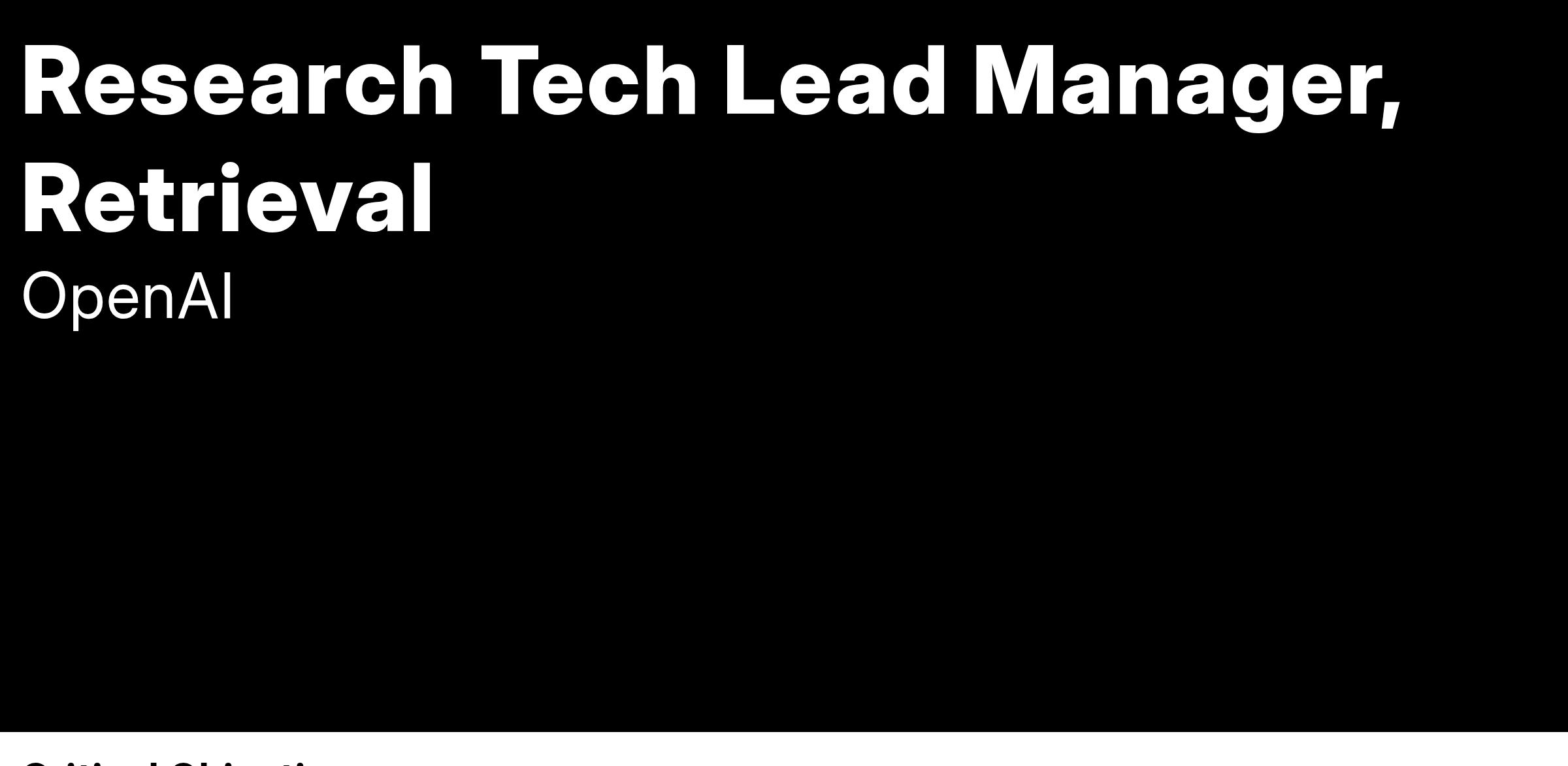 We are seeking a research tech lead / manager (TLM) for the post-training retrieval team to lead a team of researchers and research engineers. The focus of this team is to develop technology that allows our models to efficiently and accurately access information from private knowledge sources. This technology will be used in many frontier models and applications across our Research organization. This is not just a RAG implementation role. Our team’s goal is to rethink the way retrieval can work for agentic AI systems from first principles.