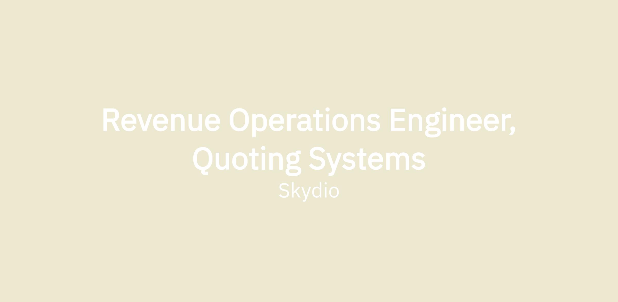 Skydio is seeking an experienced and driven Quoting Systems Engineer to join our Revenue Operations team. In this role, you will be responsible for implementing and optimizing impactful processes and systems in the Quote to Order phase of the sales cycle. You will work closely with cross-functional teams to identify areas for improvement, streamline operations, and drive revenue growth. In addition to having deep expertise in Skydio’s tech stack, this role will require strong program management skills and the ability to proactively solve complex and ambiguous problems.