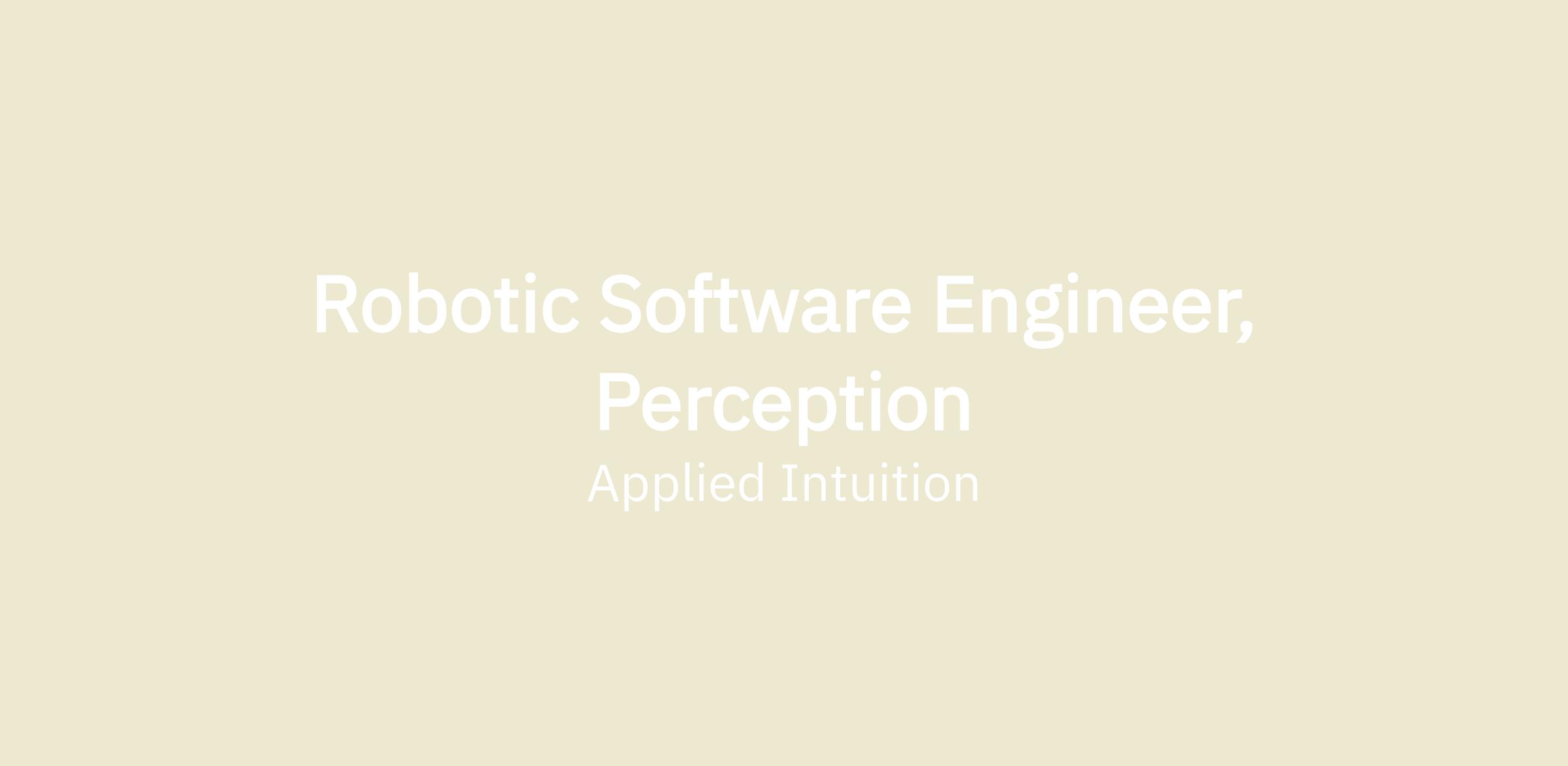 Robotic Software Engineer, Perception