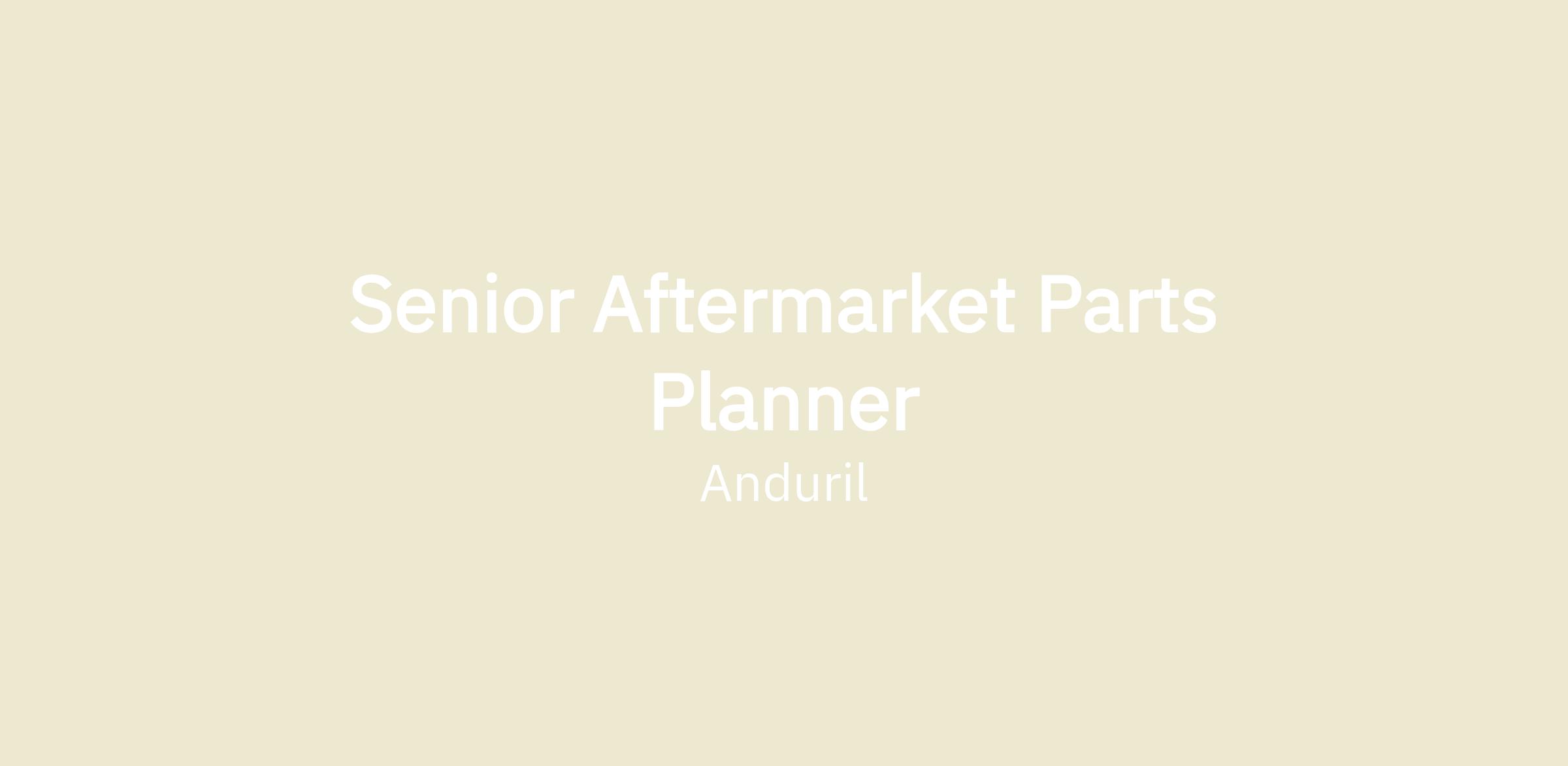 Anduril’s Planning team is seeking a world-class Senior Aftermarket Parts Planner (internally known at Anduril as Senior Field Service Parts Planner) to join our team. The Senior Aftermarket Parts Planner has an integral role at Anduril, ensuring the availability of critical maintenance materials, spare parts, and consumables to support asset uptime and operational readiness across our deployed systems. This role encompasses material flow responsibility throughout the entire value chain for Field Service & MRO items, from strategic procurement to their timely deployment in maintenance activities.
