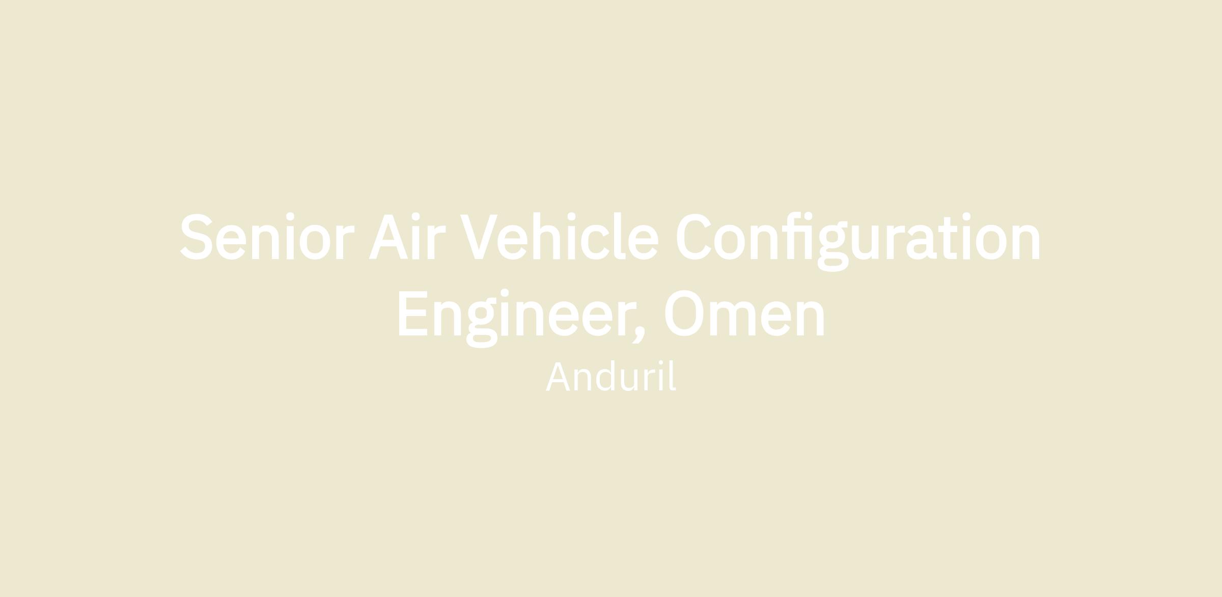 Anduril is seeking a Senior Air Vehicle Configuration Engineer to join the Omen Team at our Costa Mesa HQ. Omen is Anduril’s hover-to-cruise autonomous air vehicle (AAV) that packs the endurance, payload, and mission flexibility of much larger airplanes into a novel runway-independent Group 3 platform. Omen can operate from ship decks, beaches, or remote island clearings, providing true runway independence and freedom of maneuver across defense and civilian domains. Omen is the first tail-sitter aircraft with a mass-production contract, with an order of 50 systems representing a decisive investment that anchors production and accelerates the development of future systems.