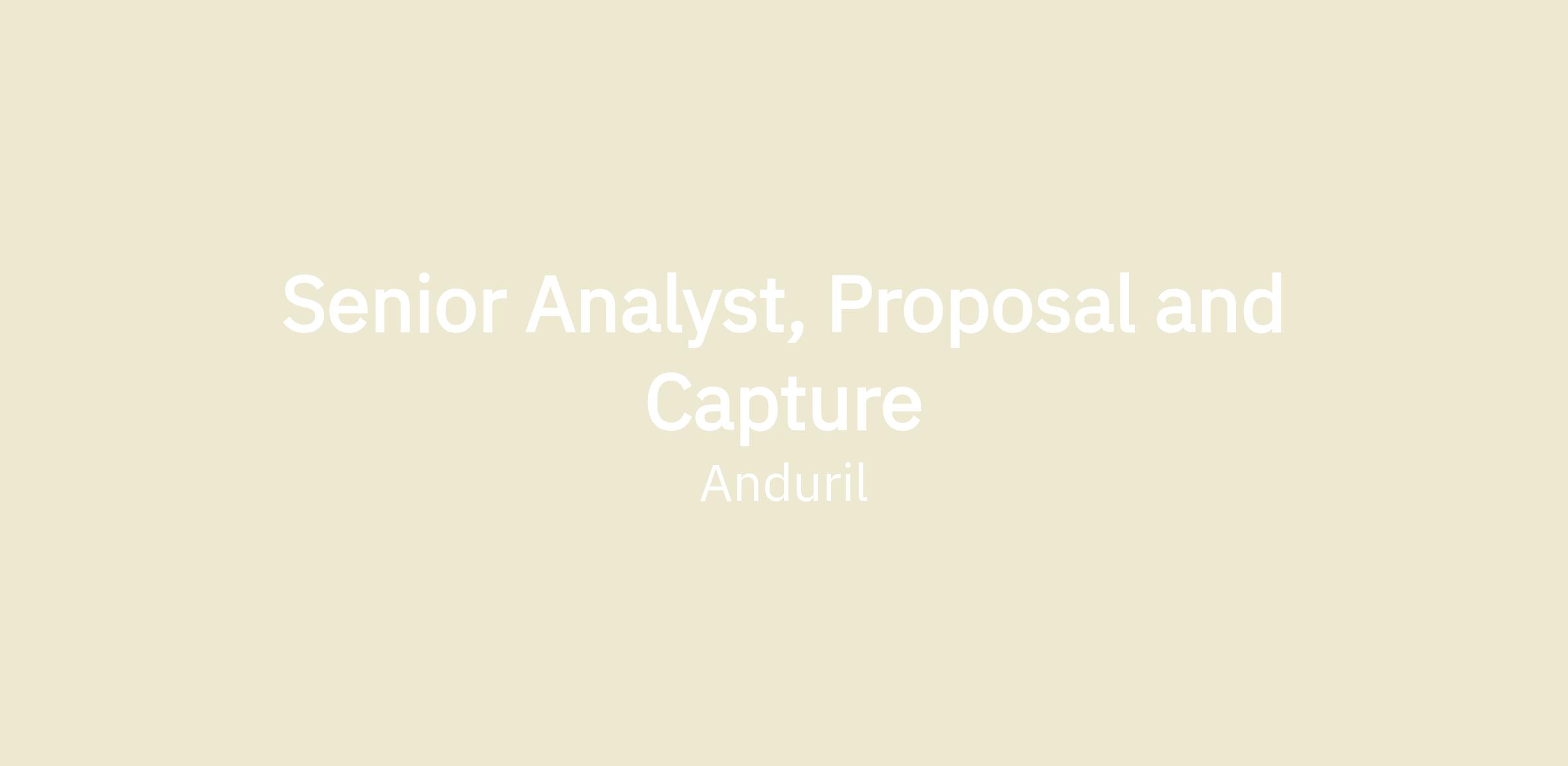 As a new Senior Analyst supporting the Proposal and Capture team, you will join the team that sits at the heart of Anduril’s growth engine. You will support the development and delivery of major proposals, partnering with stakeholders across Anduril’s business lines and functional teams, including growth/business development, legal, finance, engineering, program management and executive teams to win new business. You will provide essential project management and content generation skills, expertly navigating the dynamic environment of a hyper-growth company and managing competing priorities with overlapping schedules. You will learn to craft compelling material to inform our customers’ market research and acquisition strategies, write technical narratives on cutting edge capabilities, build and implement pricing strategies, and collaborate with internal and external stakeholders to close deals. You will progressively move into managing larger and more complex deals and supporting the internal process of bringing them from initial inception to contract close.