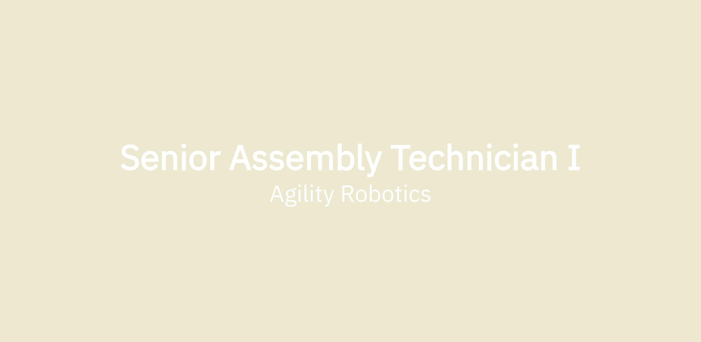 The Senior Assembly Technician I is responsible for the assembly, inspection, test, repair and refurbishment of Agility's humanoid robots and robot products at our new RoboFab factory in Salem, OR.