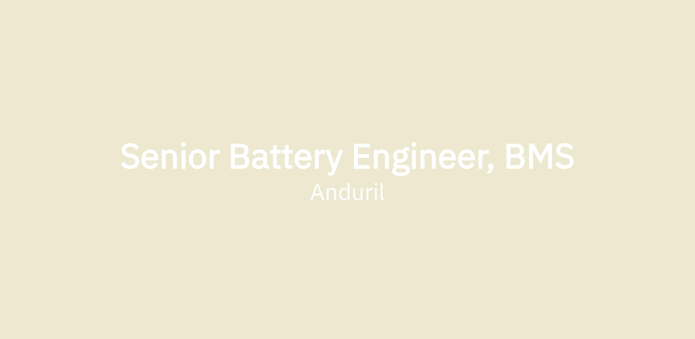 Anduril is seeking an experienced Systems Engineer with expertise in energy storage subsystem development. Looking for a self-starter with technical experience in defense, aerospace, industrial or electrification industries to apply their skills to meet Anduril’s unique set of challenges. This individual will be responsible for energy storage development and systems engineering, from concept to production, while ensuring alignment with strategic business goals supporting the AD&S team. The engineer could also be involved in managing key vendor relationships, and ensuring performance and reliability in our cutting-edge technologies.