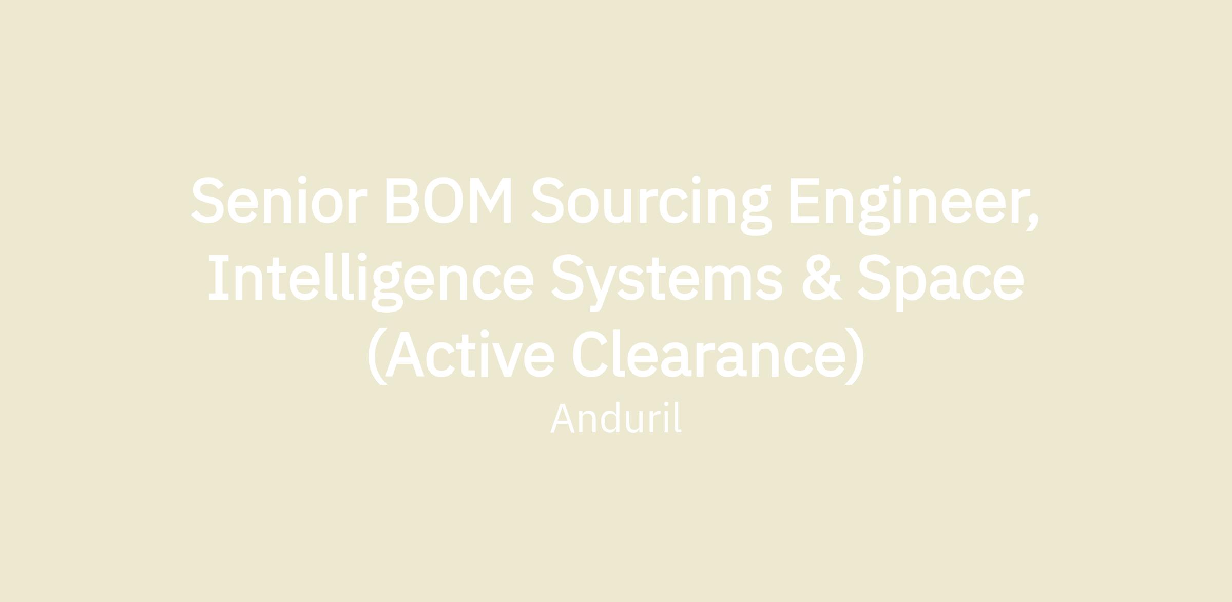 The Senior BOM Sourcing Engineer (internally known at Anduril as Senior Product Sourcing Engineer), for Intelligence Systems & Space programs, drives the strategic supply network development and cost management of Anduril’s product hardware across their lifecycles, by collaborating with suppliers and cross-functionally, including folks in engineering, quality, and manufacturing. You will be the end to end owner of supply chain for the Anduril Intelligence & Space business line, responsible for engineering support, vendor onboarding & development, as well sourcing, pricing, and negotiating for the total Bill of Material (BOM)