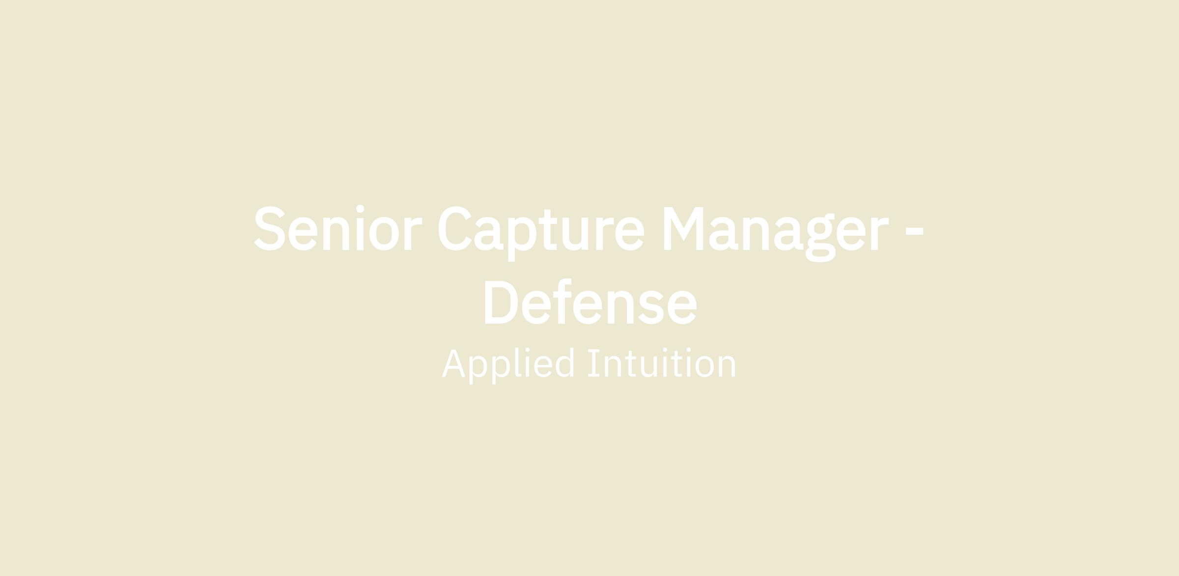 We are looking for a Capture Manager to join our fast-growing Defense Team. At Applied Intuition, you will sit at the intersection of strategy and execution, transforming our advanced autonomous systems technology into winning narratives for the warfighter.