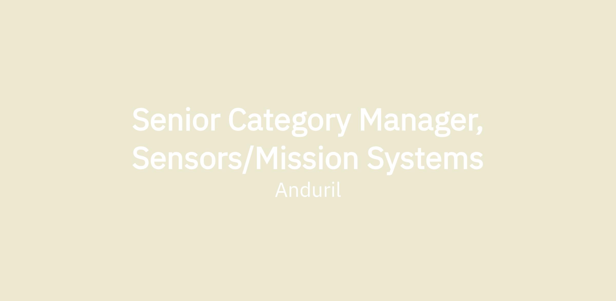 The Senior Category Manager, Sensors/Mission Systems (internally known at Anduril as a Senior Global Sourcing Manager), is the domain expert for the sensor/mission systems commodities for Anduril Industries. This is a proactive, high-impact role in securing critical components, materials, and services that power our products. This role will be responsible for developing new supplier and new sourcing partnerships that can be incorporated into new products, as well as existing products to improve their technologies, cost, and quality. There is broad internal cross functional partnership to evaluate supplier opportunities, while ensuring commercial agreements, intellectual property, and statement of works are accurate and well established prior to pipelining.