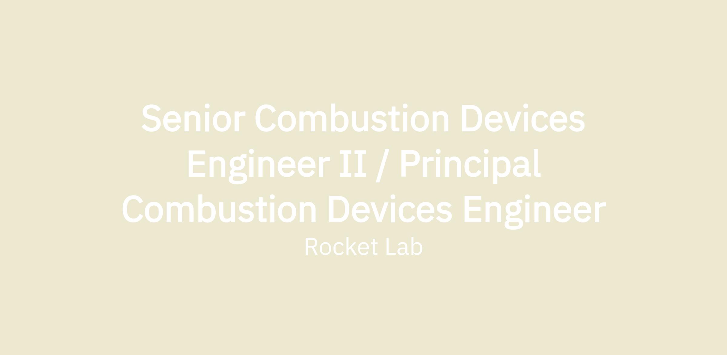 SENIOR COMBUSTION DEVICES ENGINEER II / PRINCIPAL COMBUSTION DEVICES ENGINEER