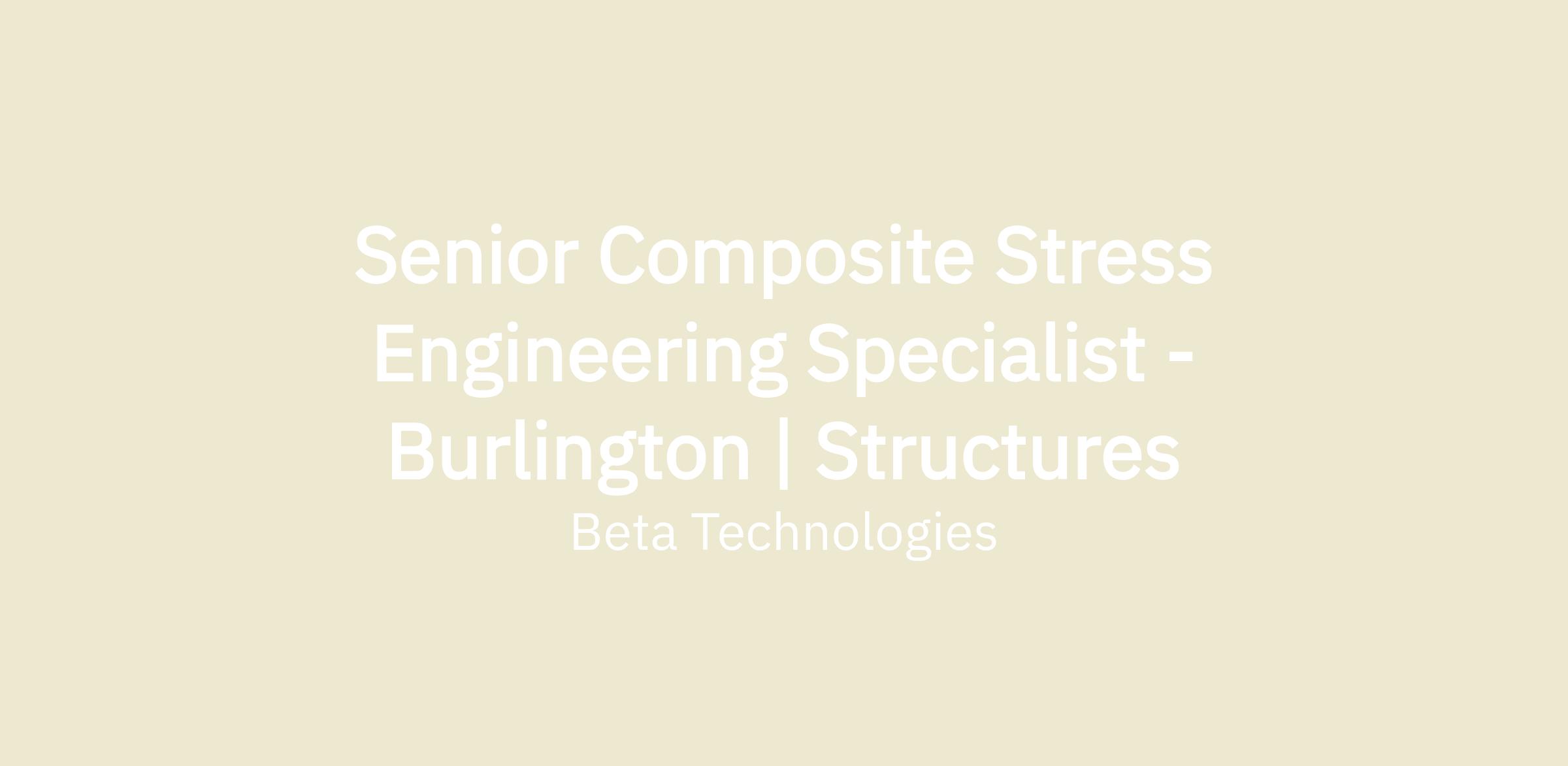 BETA Technologies is seeking a driven aerospace engineer as Senior Composite Stress Engineering Specialist for the Burlington Structures team. As an integral member of BETA's growing team, you will be highly motivated to work with dynamic, cross-functional groups to ensure the success of the aircraft through certification.