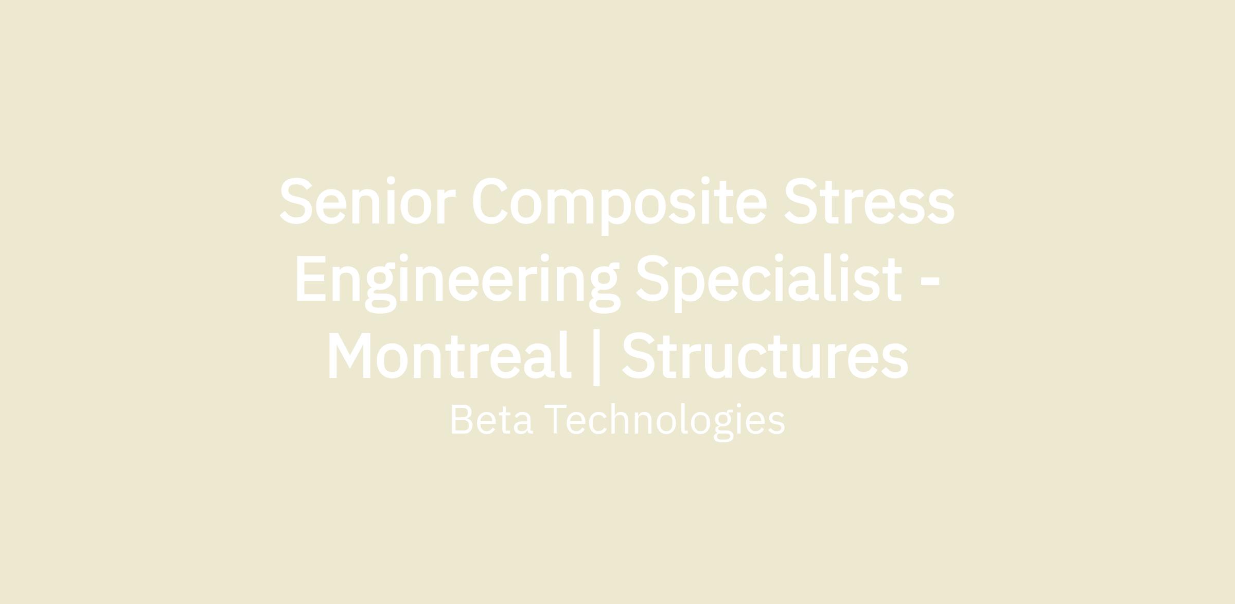 BETA Technologies is seeking a driven aerospace engineer as Senior Composite Stress Engineering Specialist for the Montreal Structures team. As an integral member of BETA's growing team, you will be highly motivated to work with dynamic, cross-functional groups to ensure the success of the aircraft through certification.