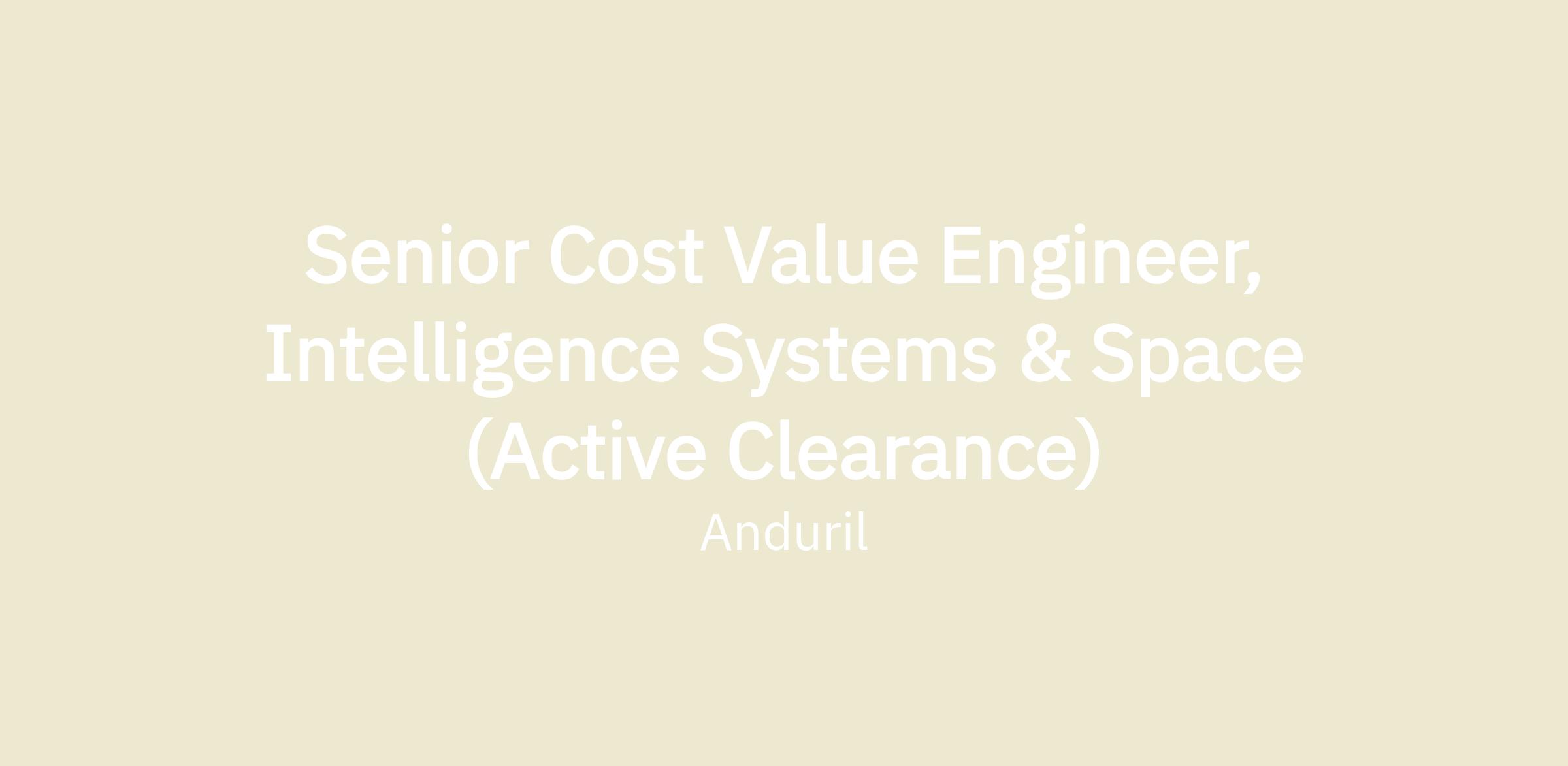 The Senior Cost Value Engineer (internally known at Anduril as Senior Product Sourcing Engineer), for Intelligence Systems & Space programs, drives the strategic supply network development and cost management of Anduril’s product hardware across their lifecycles, by collaborating with suppliers and cross-functionally, including folks in engineering, quality, and manufacturing. You will be the end to end owner of supply chain for the Anduril Intelligence & Space business line, responsible for engineering support, vendor onboarding & development, as well sourcing, pricing, and negotiating for the total Bill of Material (BOM)